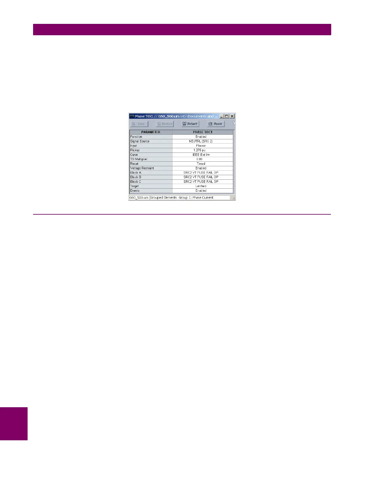 GROUPED ELEMENTS SETTING GROUP 1 PHASE CURRENT PHASE TOC1 menu: