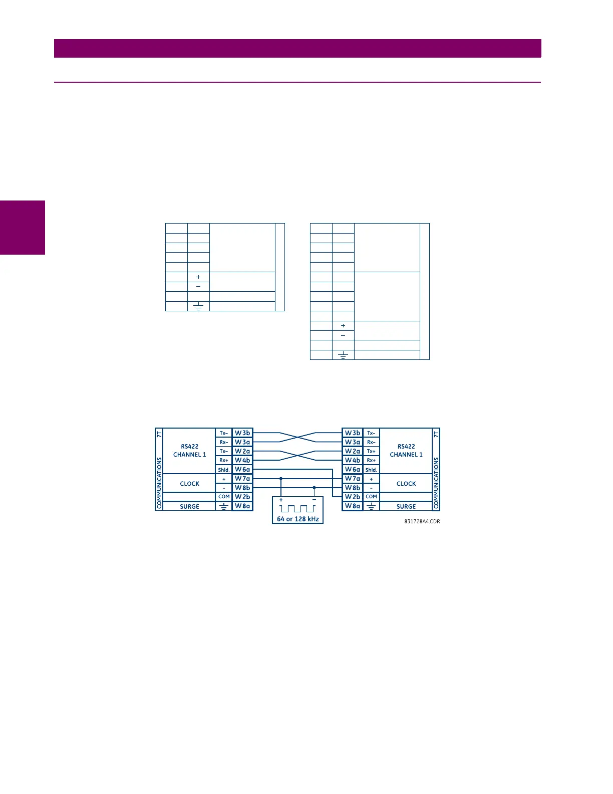 certain criteria must be followed since there is one clock input for the two RS422 channels. The system will function cor-