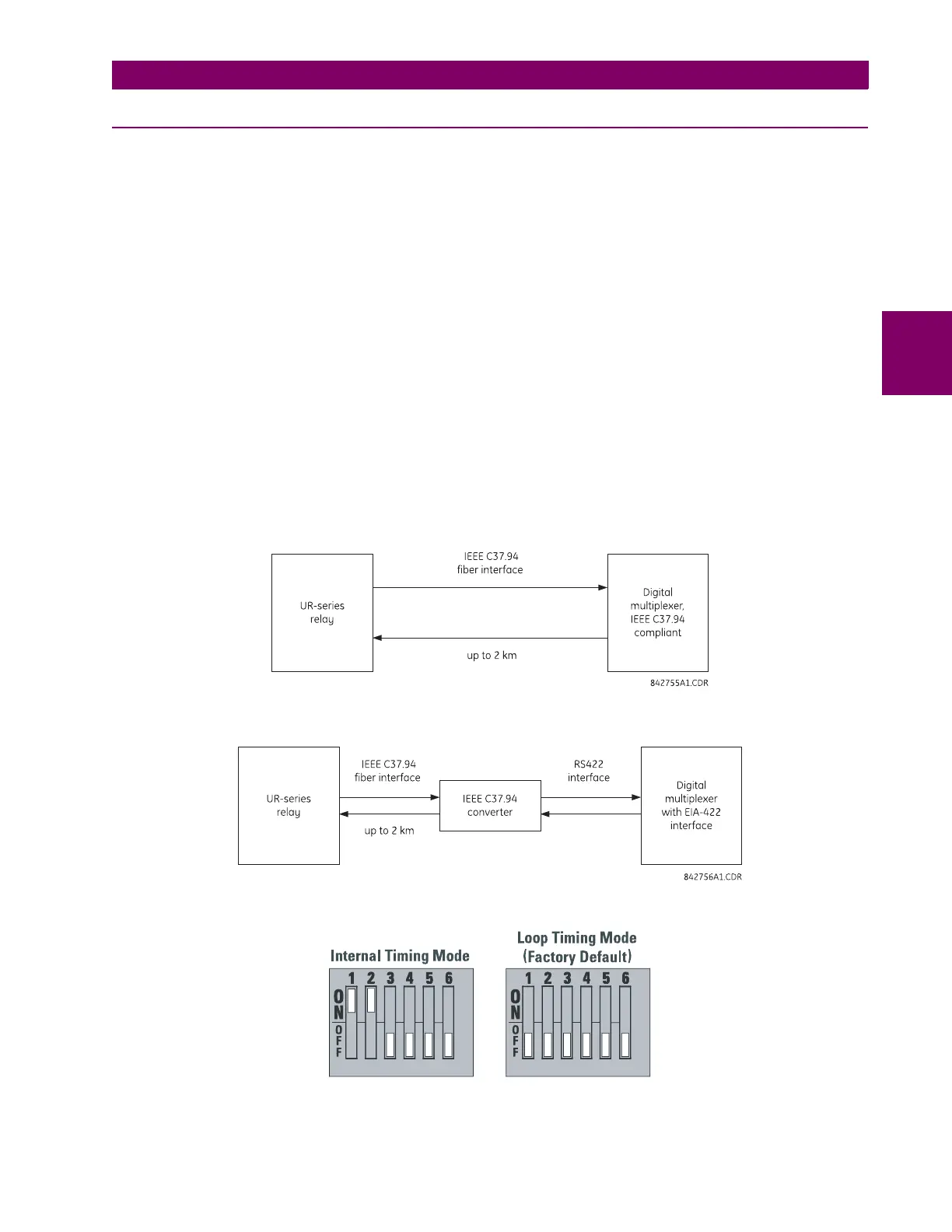 The UR-series C37.94 communication module has six (6) switches that are used to set the clock configuration. The func-