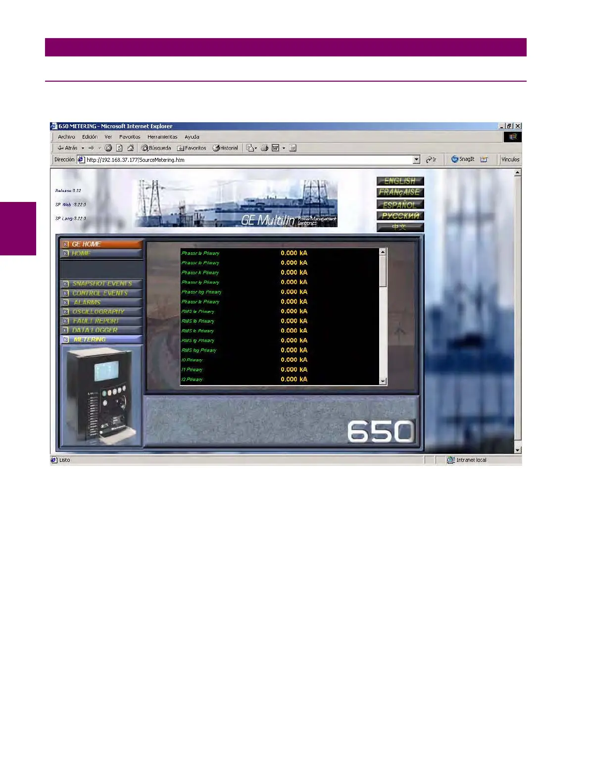 GE Multilin G650 - Metering