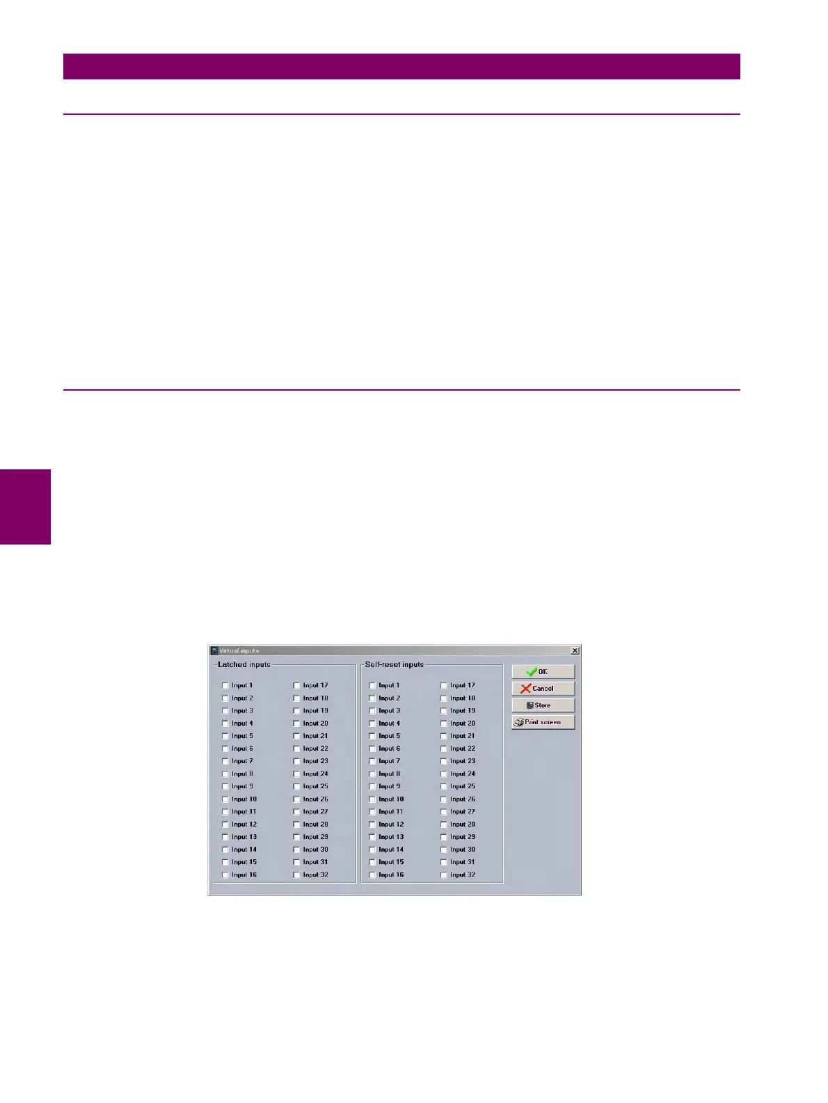 The change of state of virtual inputs is made according to their type. Latched virtual inputs remain at the set value until it is