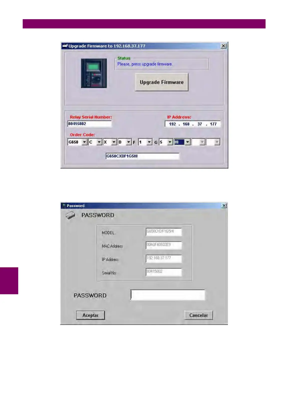 This password can be obtained placing an order with GE Multilin. The following parameters must be clearly indicated in the