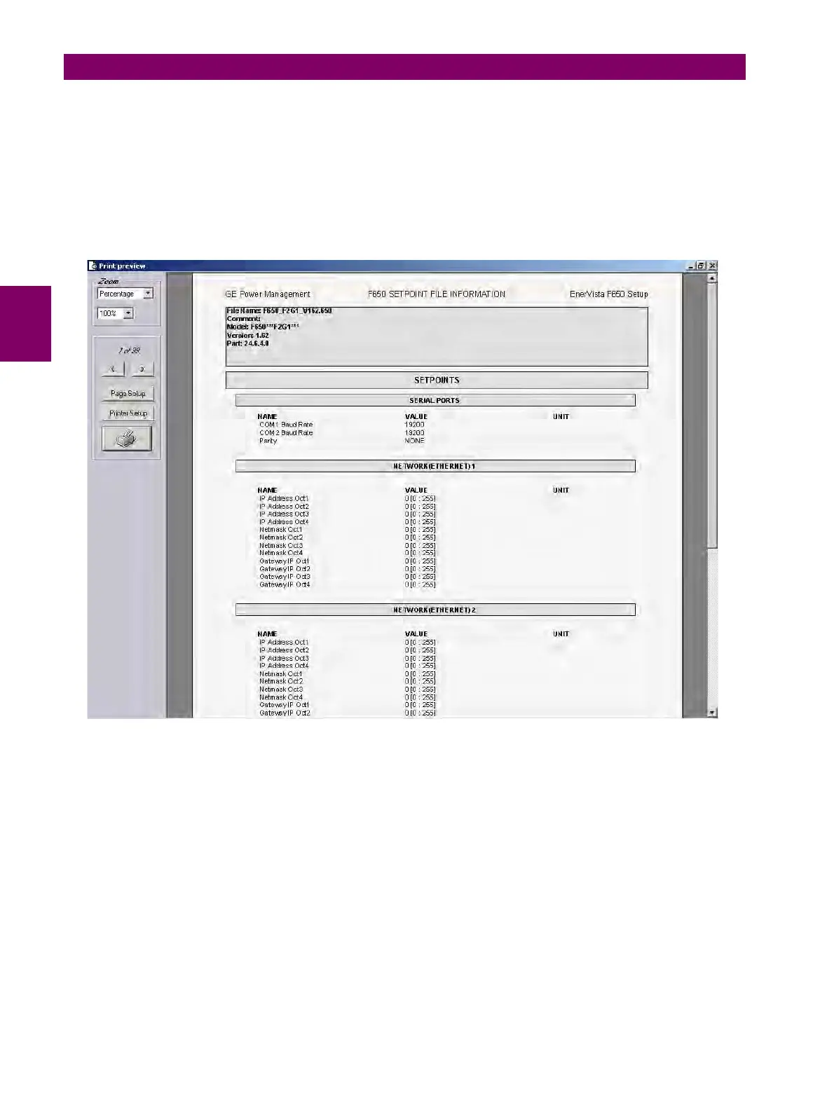 Option to preview the whole settings and configuration file (*.650) in paper format to be printed as shown in Figure 4–8:
