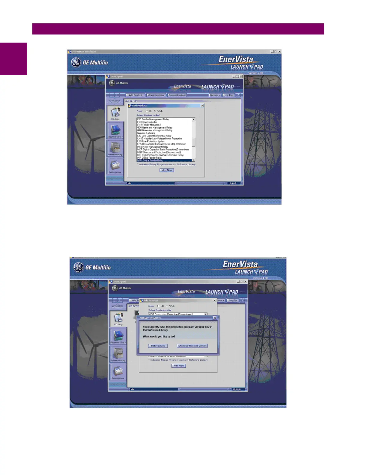7. When EnerVista detects that there is already a version of the program in the Software Library, you can choose whether