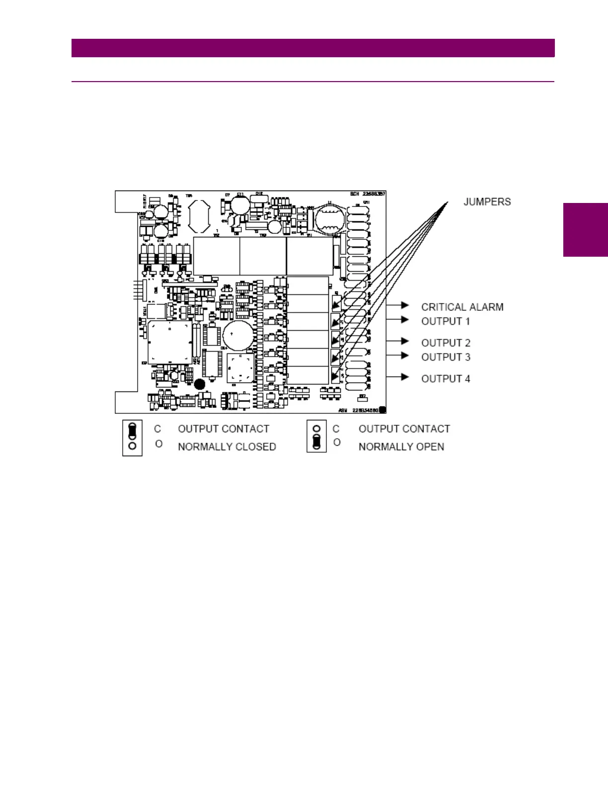 Figure 3–11: PCB SCHEME SHOWING THE JUMPERS TO CONFIGURE THE OUTPUT CONTACTS (NC / NO)