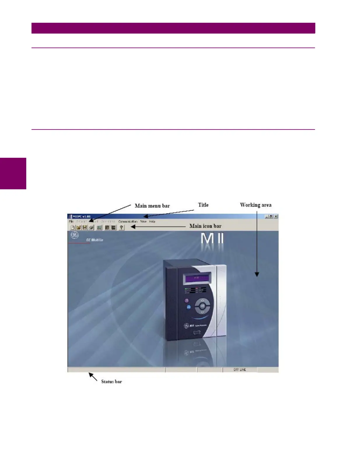 The main screen of ENERVISTA MII SETUP software includes the following components: