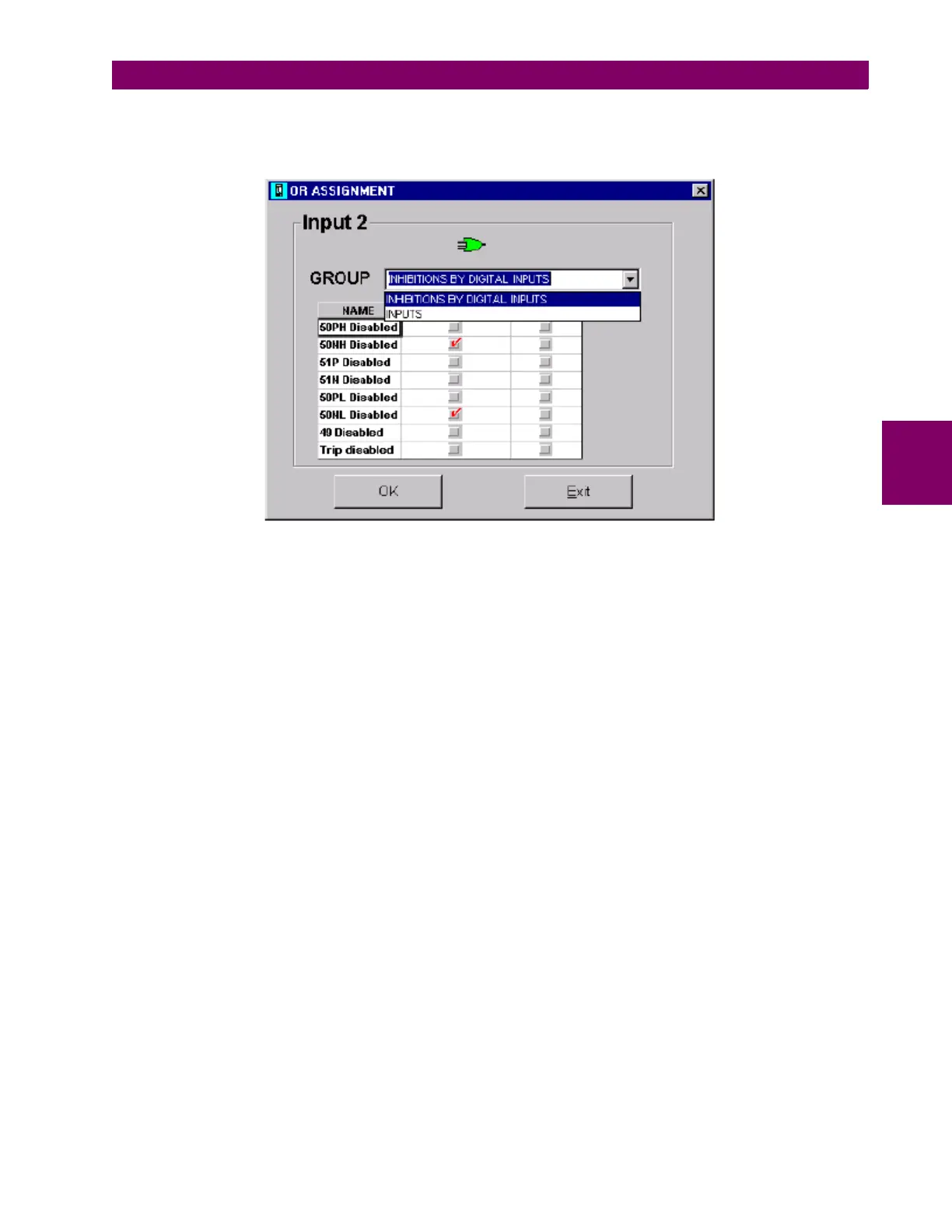 • OR: activates the OR button for the I/O configuration column (see previous point). The window that appears when the