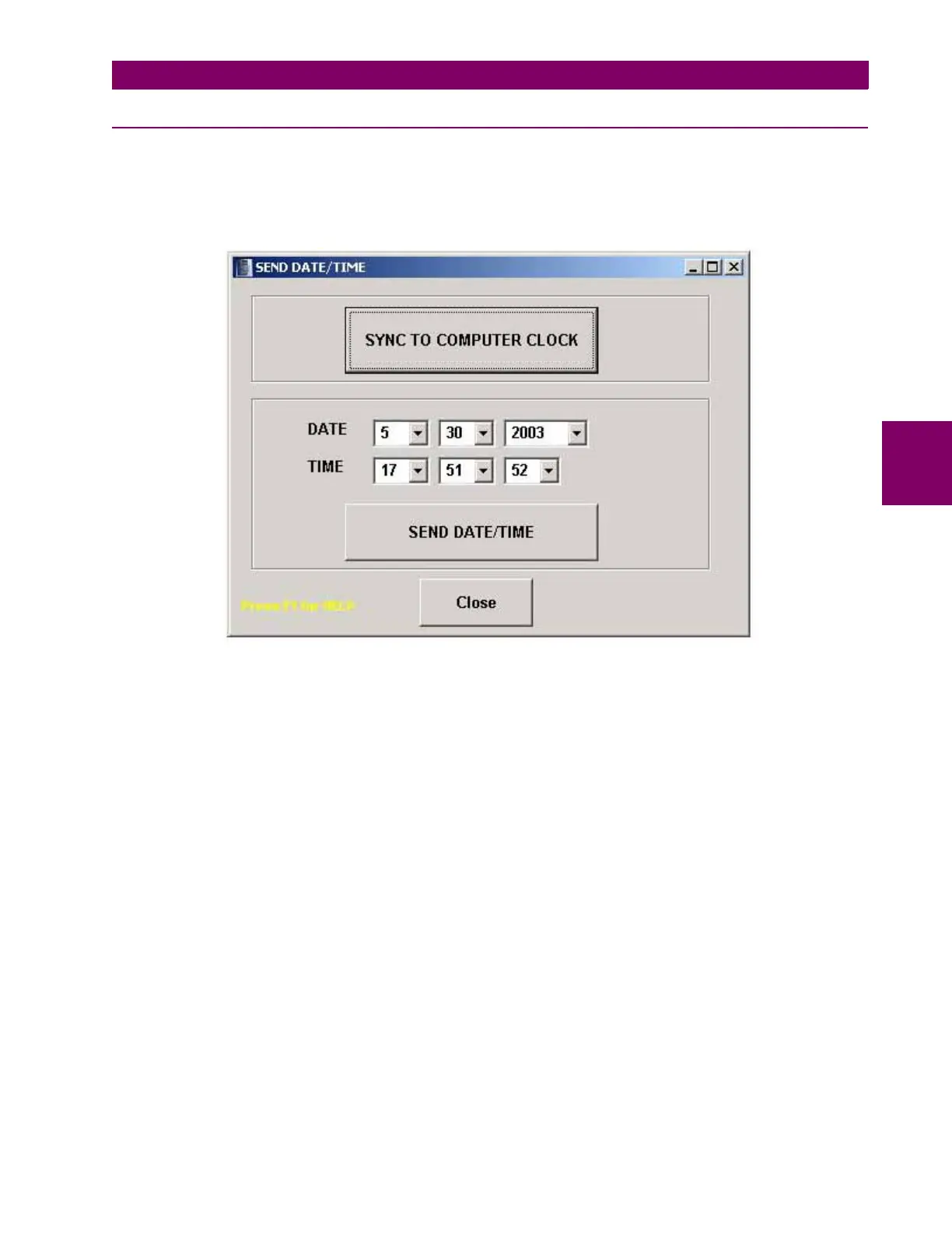 • Sending the PC date and time to the unit, this is, synchronizing the PC and the unit.