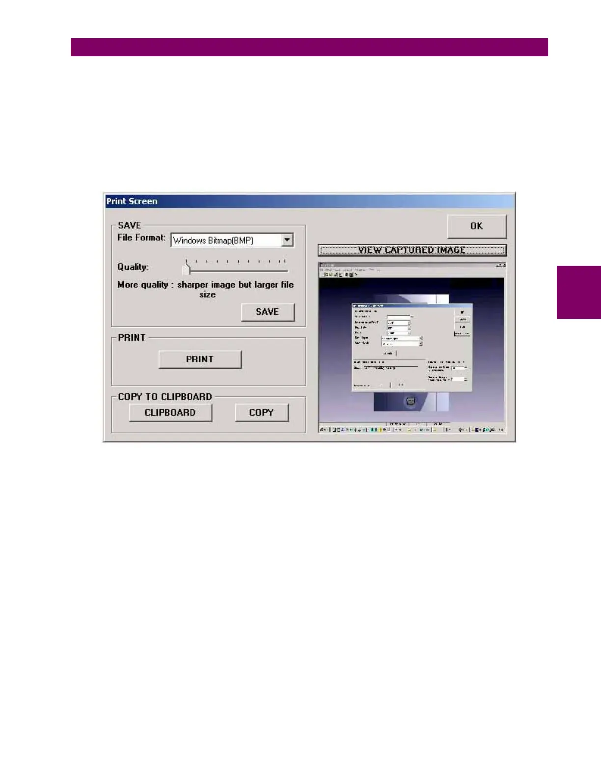 Then a new window appears allowing to view the captured screen, to save the captured file in BMP or JPG format, or to
