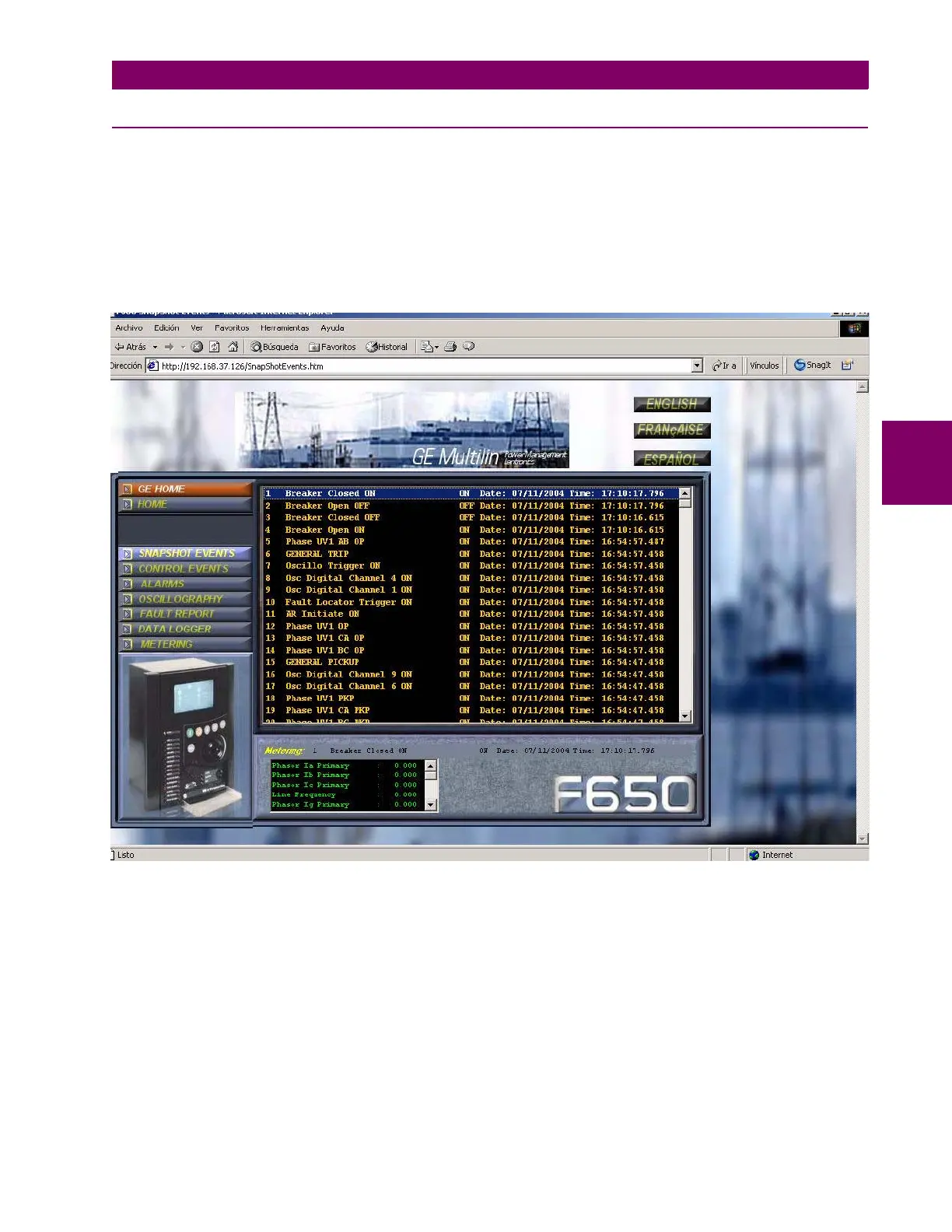 Figure 4–34: SNAPSHOT EVENTS SCREEN