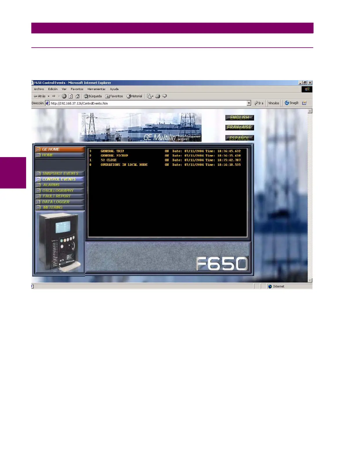 Figure 4–35: CONTROL EVENTS SCREEN