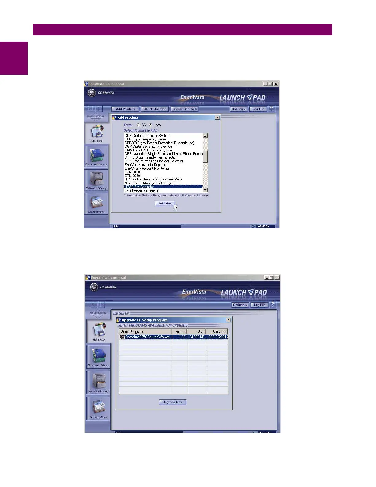 5. In the EnerVista Launch Pad window, click the Add Product button and select the “W650 Wind Generator Protection