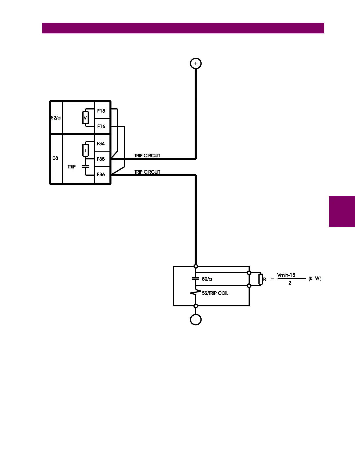 Figure 5–28: SUPERVISION APPLICATION WITH AUXILIARY CONTACT 52A AND A RESISTOR (A6631F3)