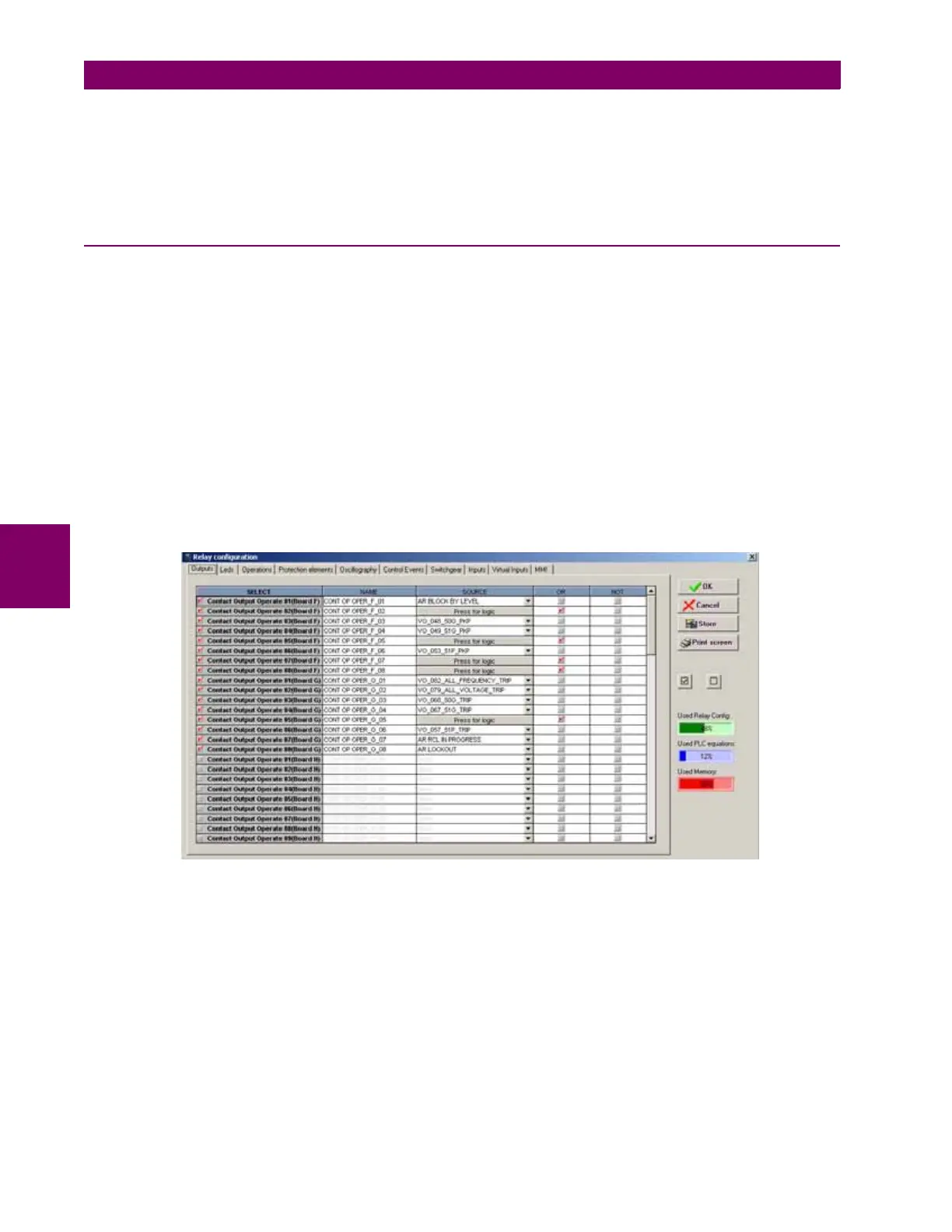 protection elements signals, graphic display configuration, etc) using internal states or already compiled equation on PLC