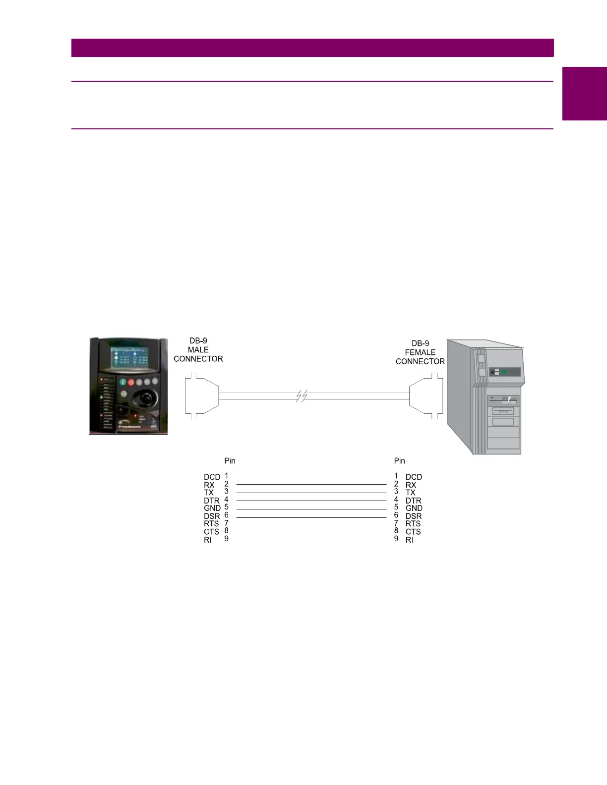 ports. To communicate via the faceplate RS232 port, a standard “straight-through” serial cable is used. The DB-9 male end