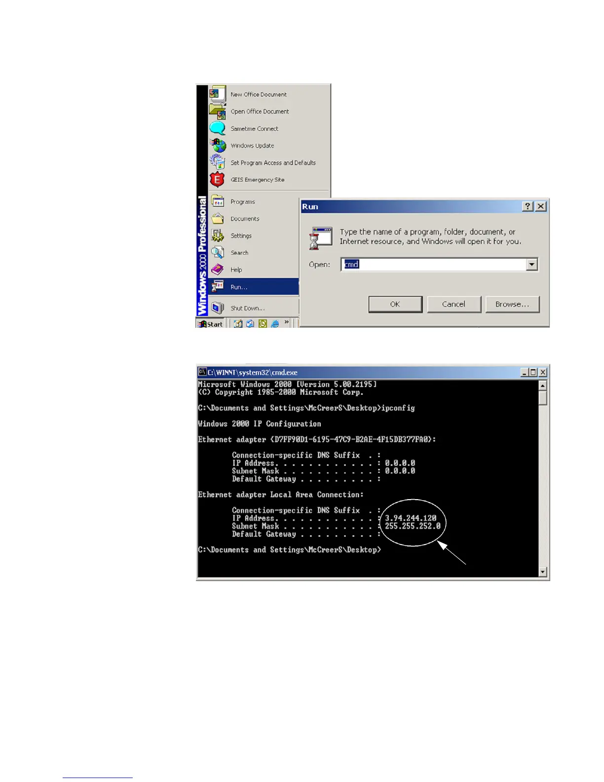 Z At the DOS prompt enter the command ipconfig followed by the
