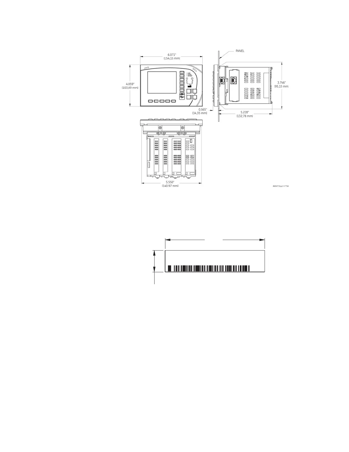 The standard panel mount and cutout dimensions are illustrated below.