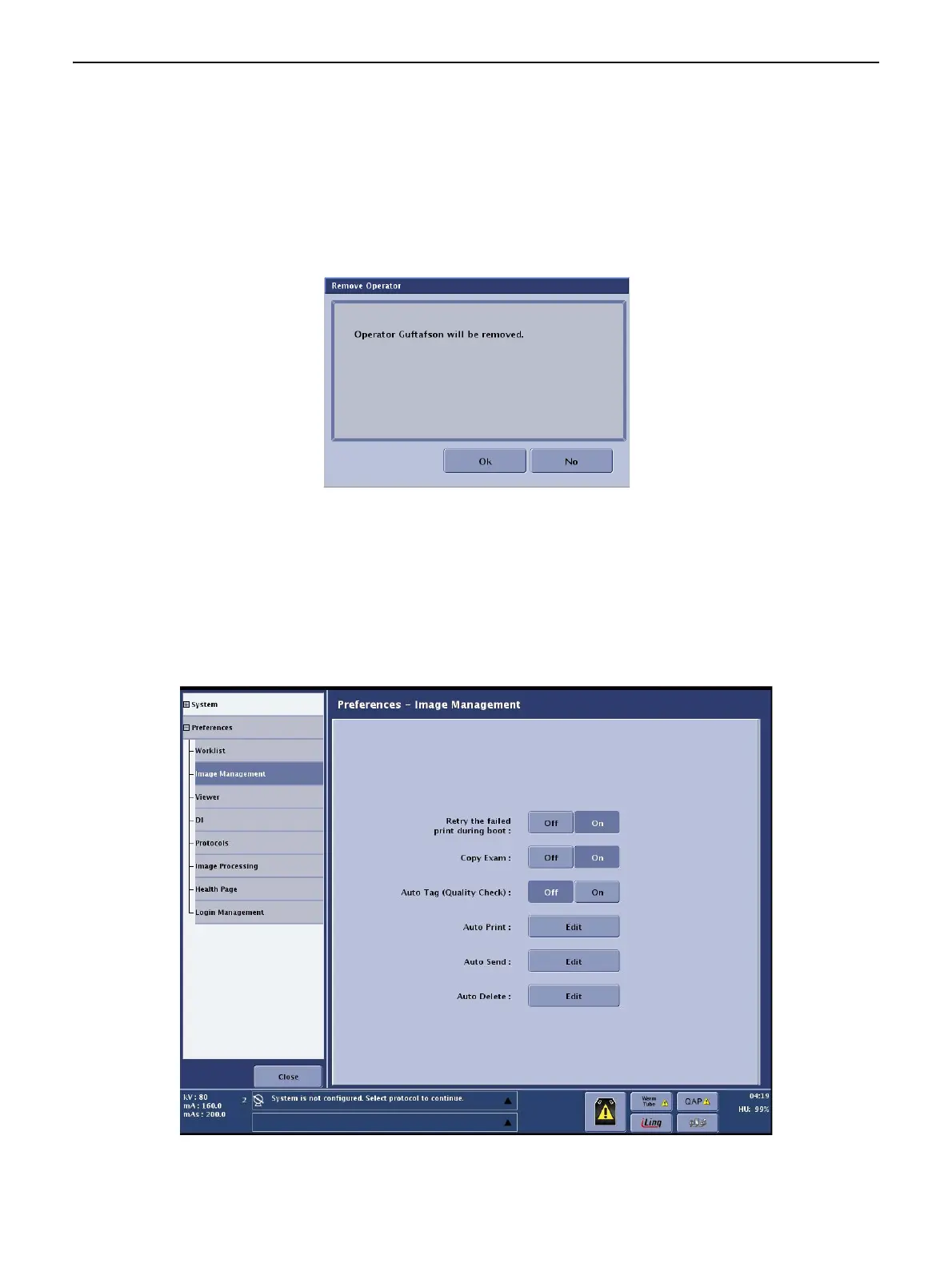 Image Management preferences allow you to enable and configure the Copy Exam, Auto Tag, Auto Print,