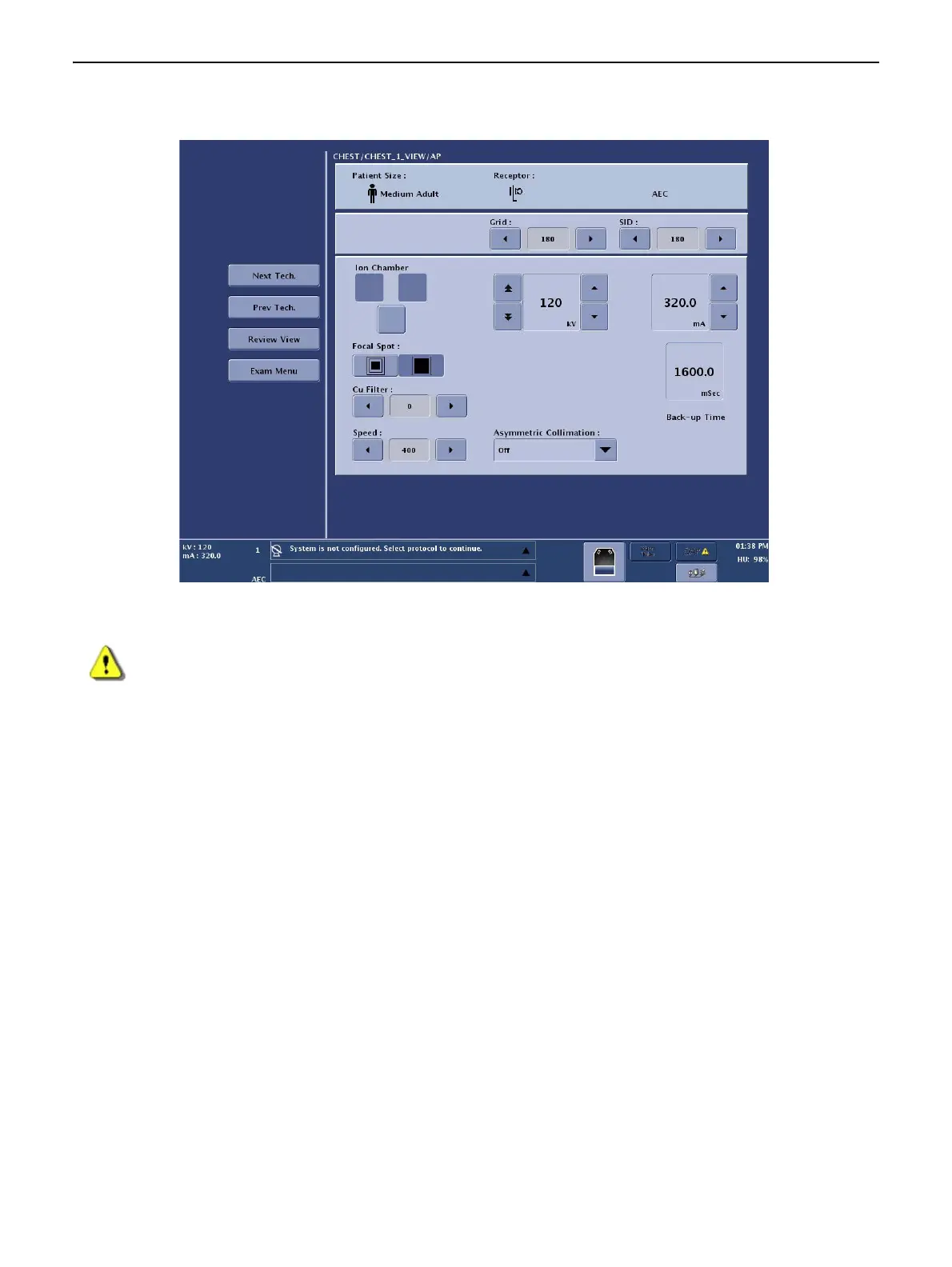 No exposures should be made until the user selects values appropriate for the