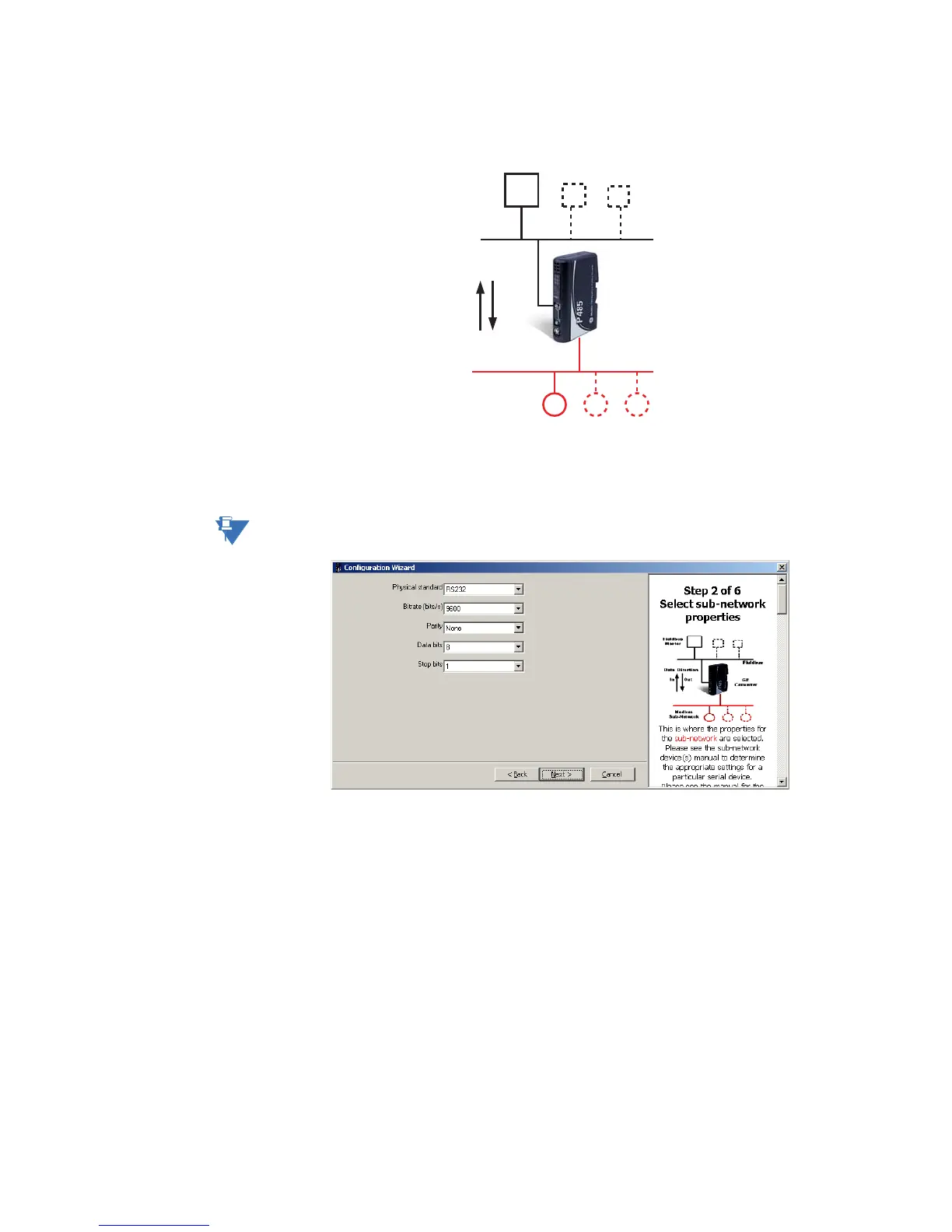 The second step in the configuration wizard selects the properties for the Modbus sub-