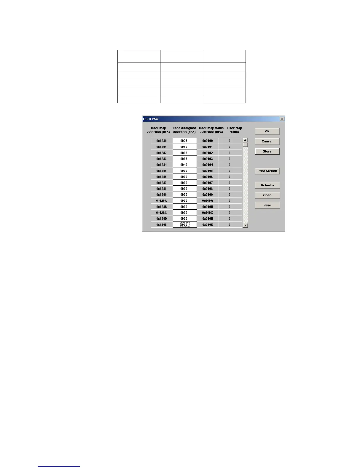 User map address Parameter User map data