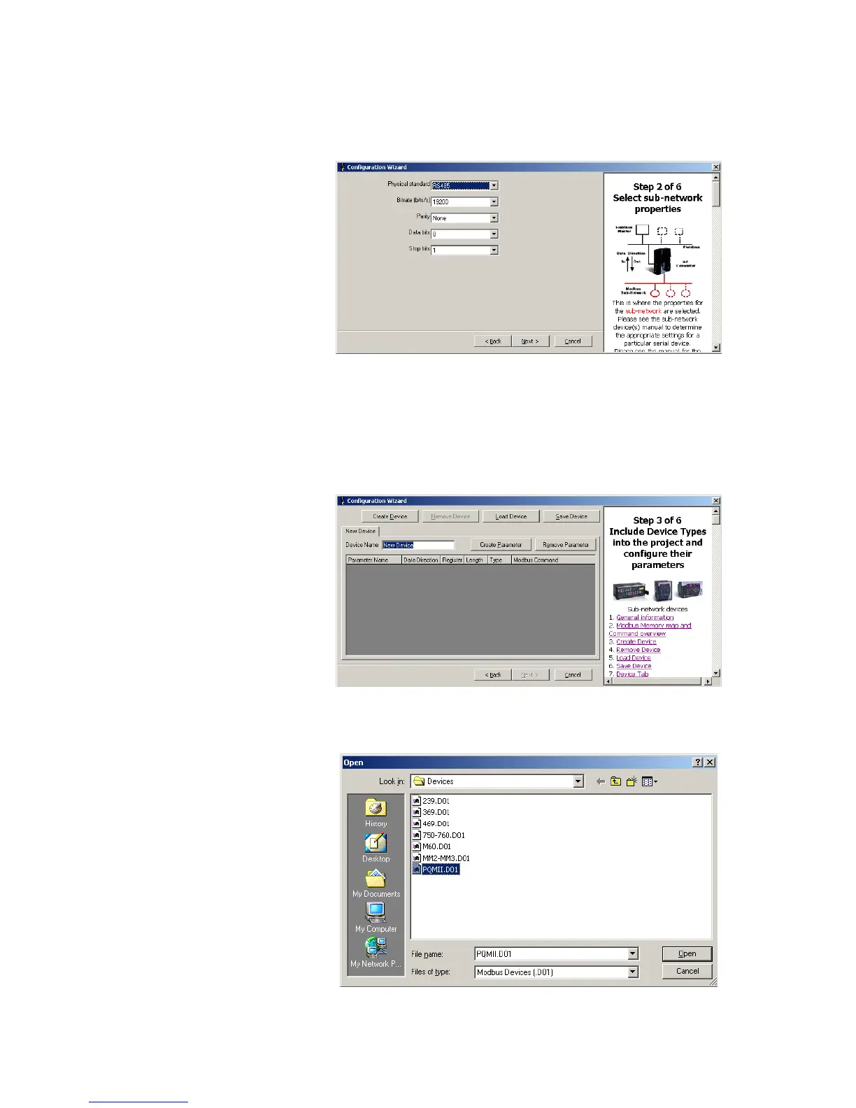 The third step in the configuration wizard is to include device types. The PQMII and MM2