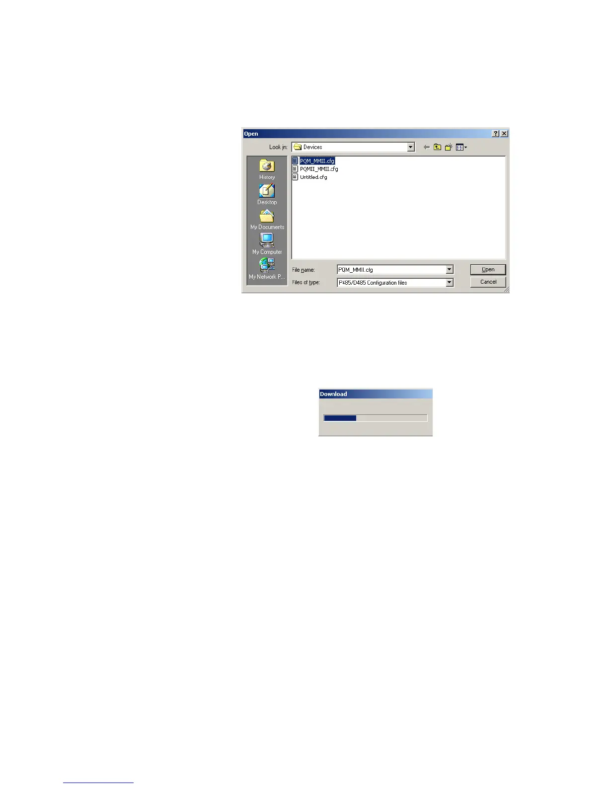 5. If the P485 does not respond to the download, ensure all connections are OK and that