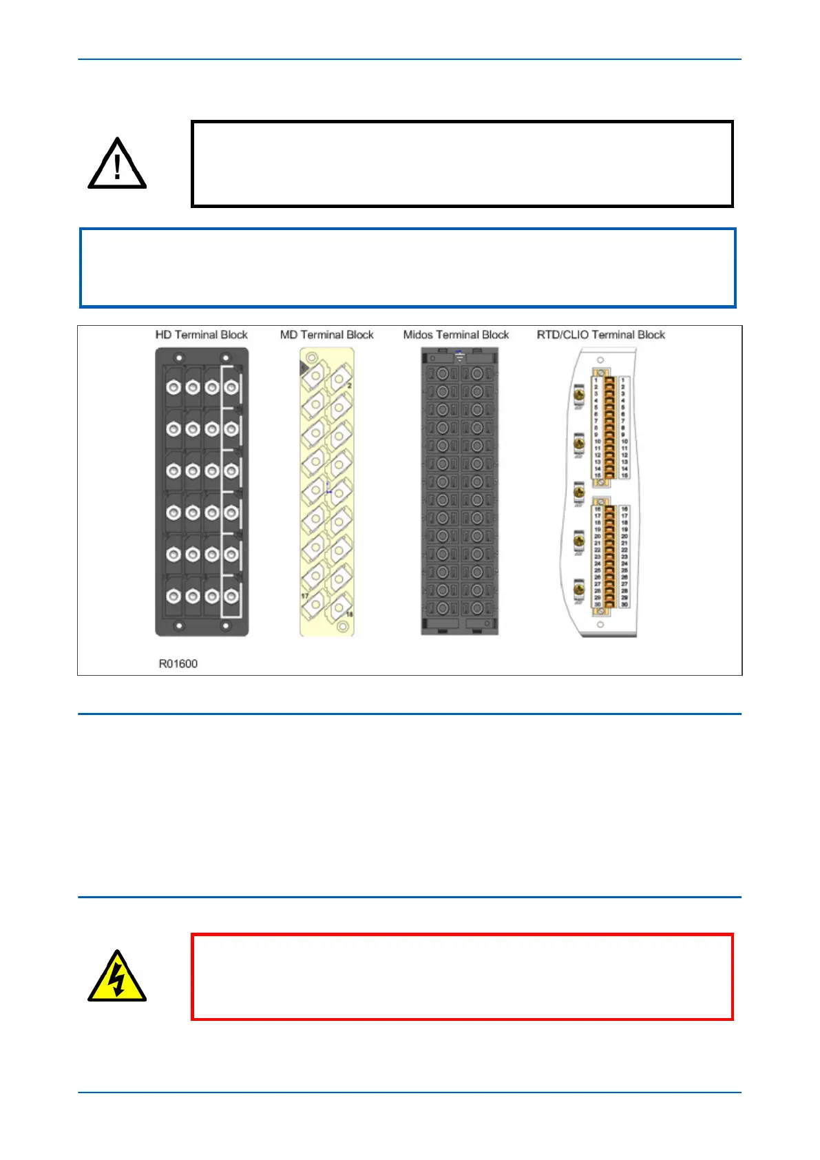 e are four possible types of terminal block: RTD/CLIO input, heavy duty, medium duty, and MiDOS. The terminal blocks are