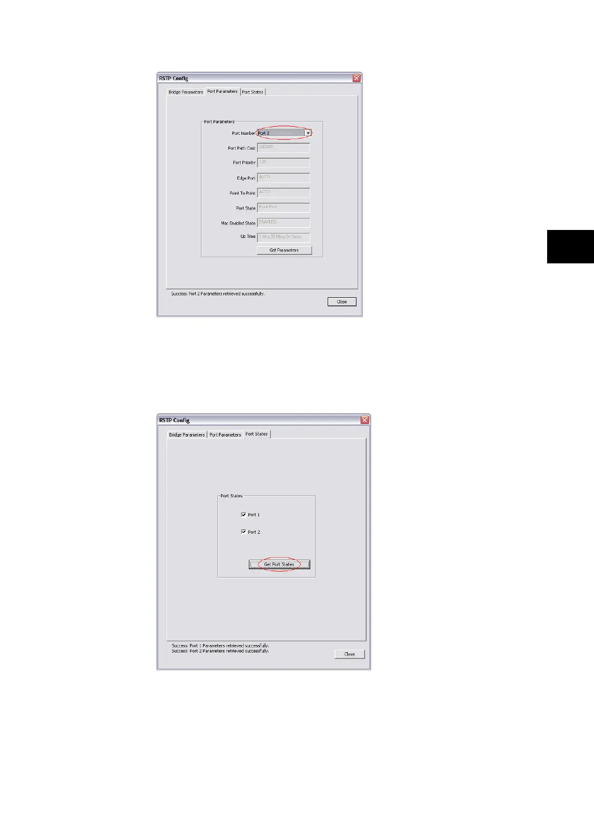 2. Select the Port States tab then click the Get Port States button. This lists the ports