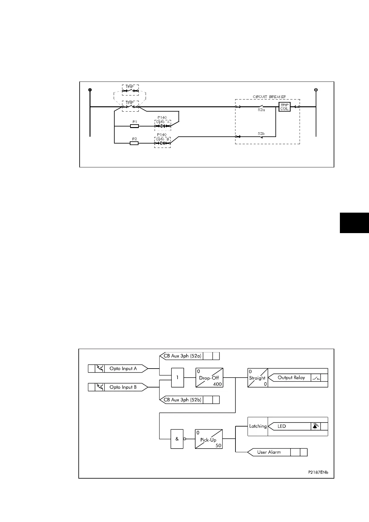 coil. When the breaker is open current flows through opto input B and the trip coil. As with