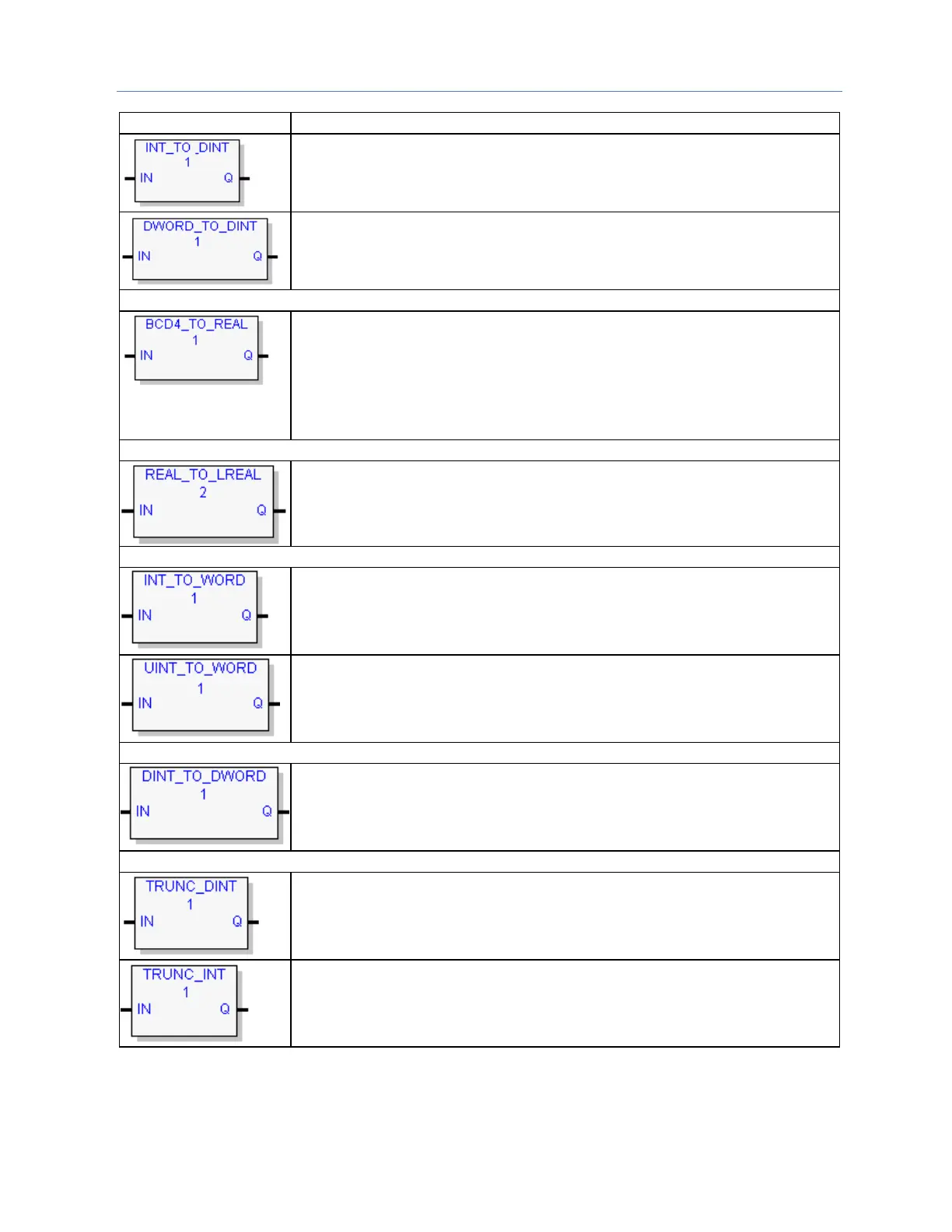 INT_TO_DINT: Converts INT to DINT.