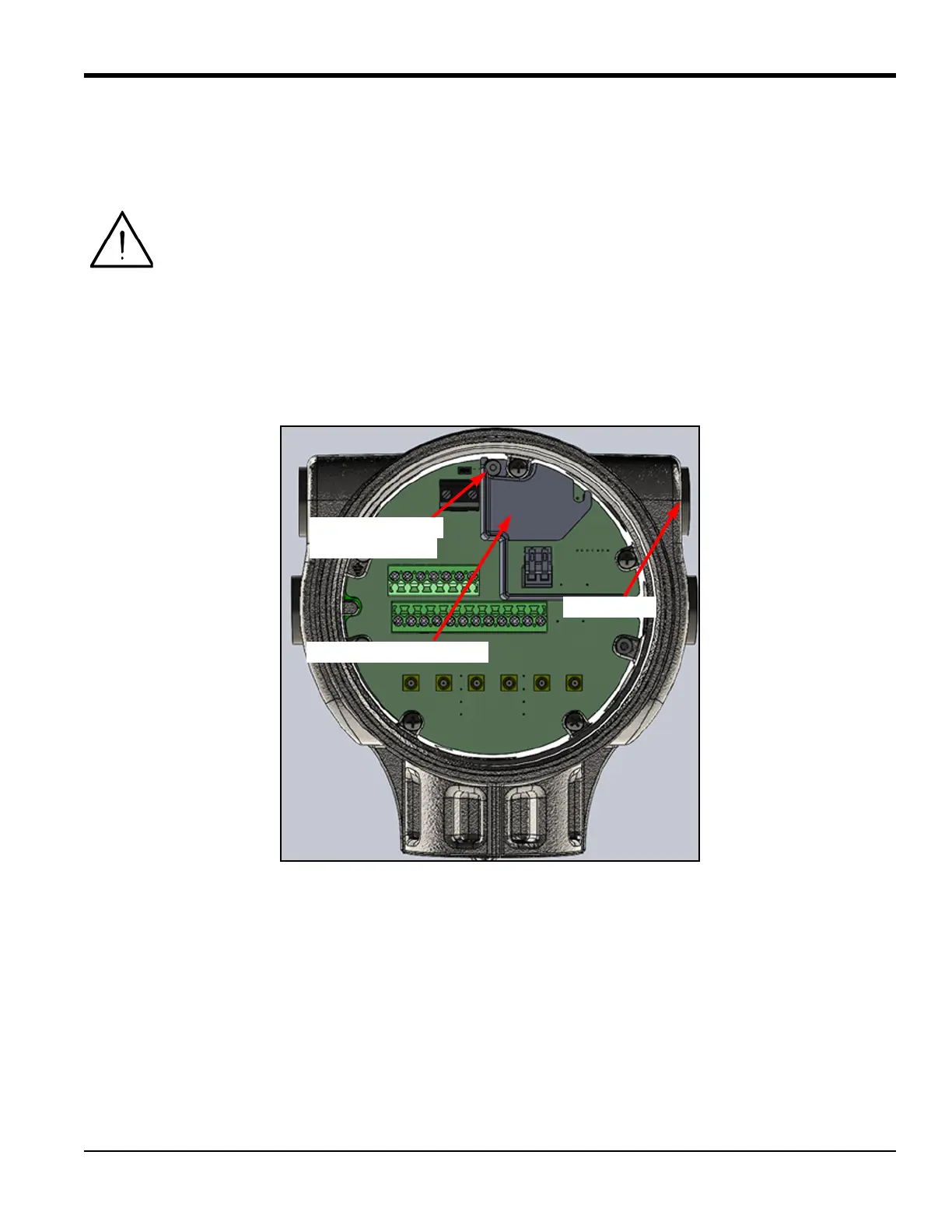 installed through the XMT1000 upper right port for direct entry into the FISCO zone on the terminal PCB.
