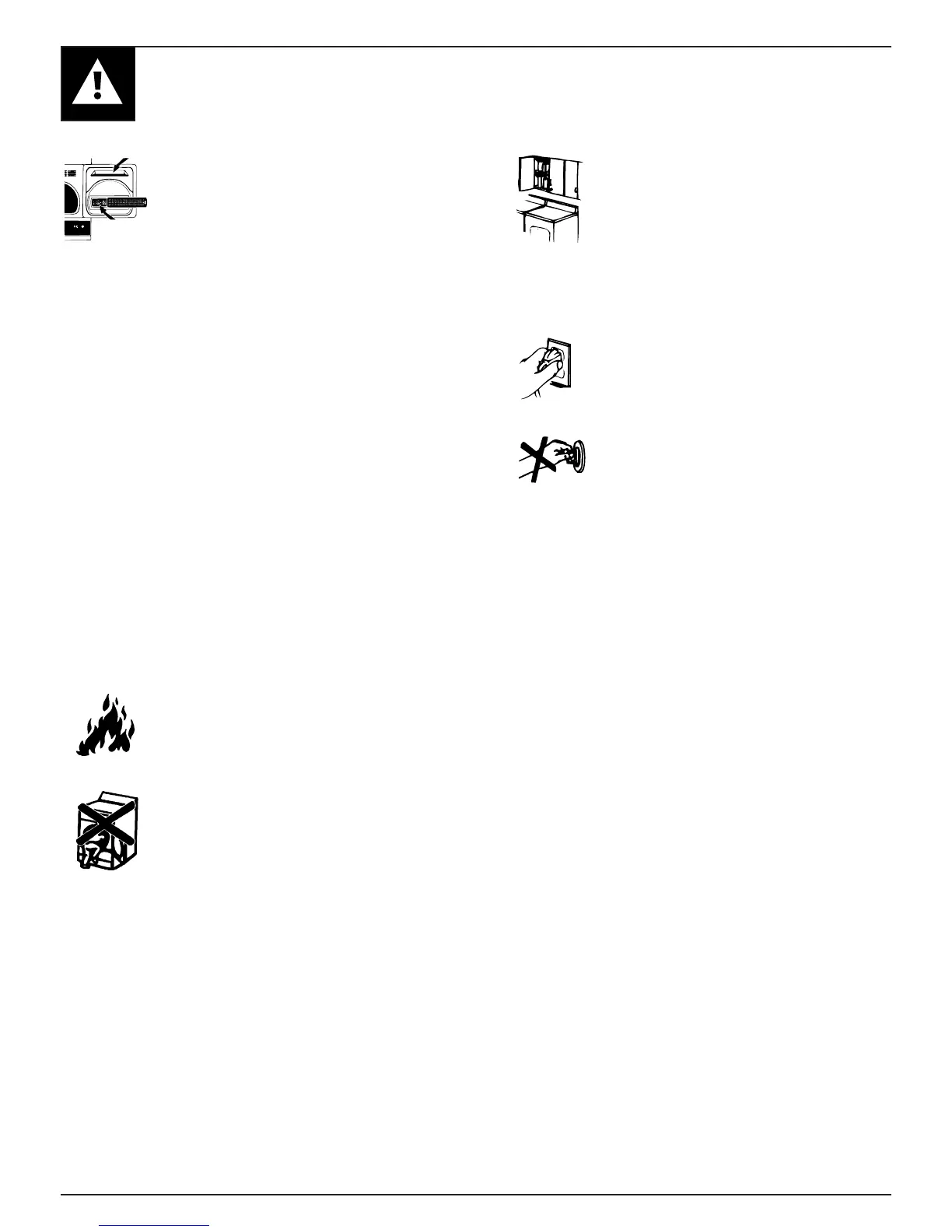 • Ne montez jamais sur le dessus de la sécheuse.