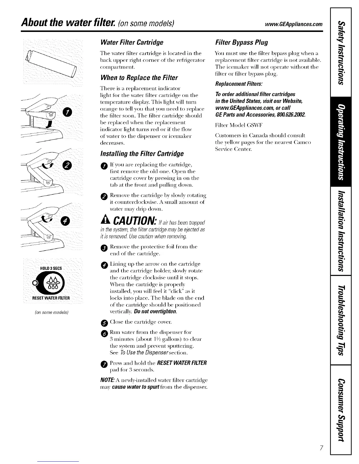 Aboutthe water filter.(onsomemodels) www.GEAppliances.com