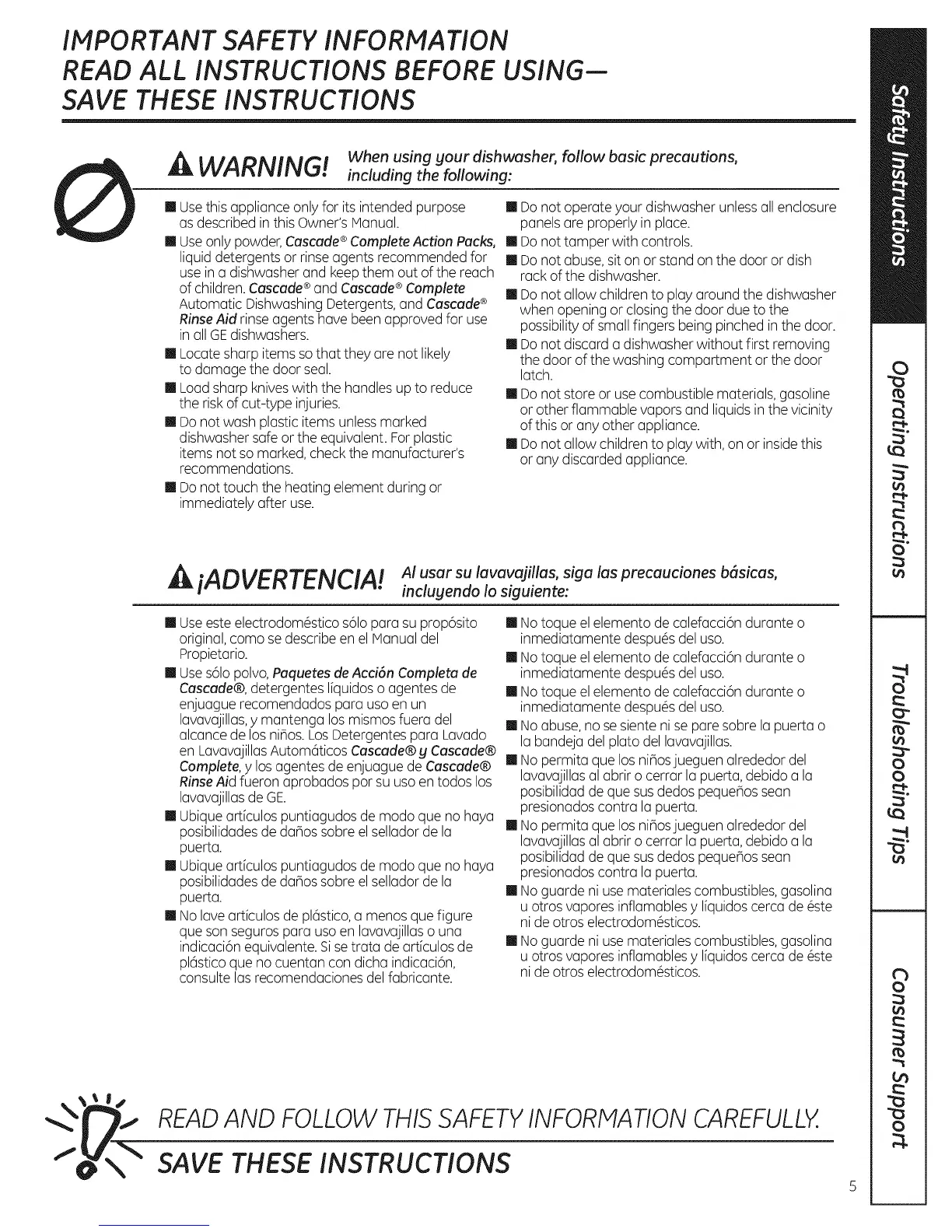 Ik iADVERTENCIA! AI usar su lavavajillas, siga las precauciones b6sicas,