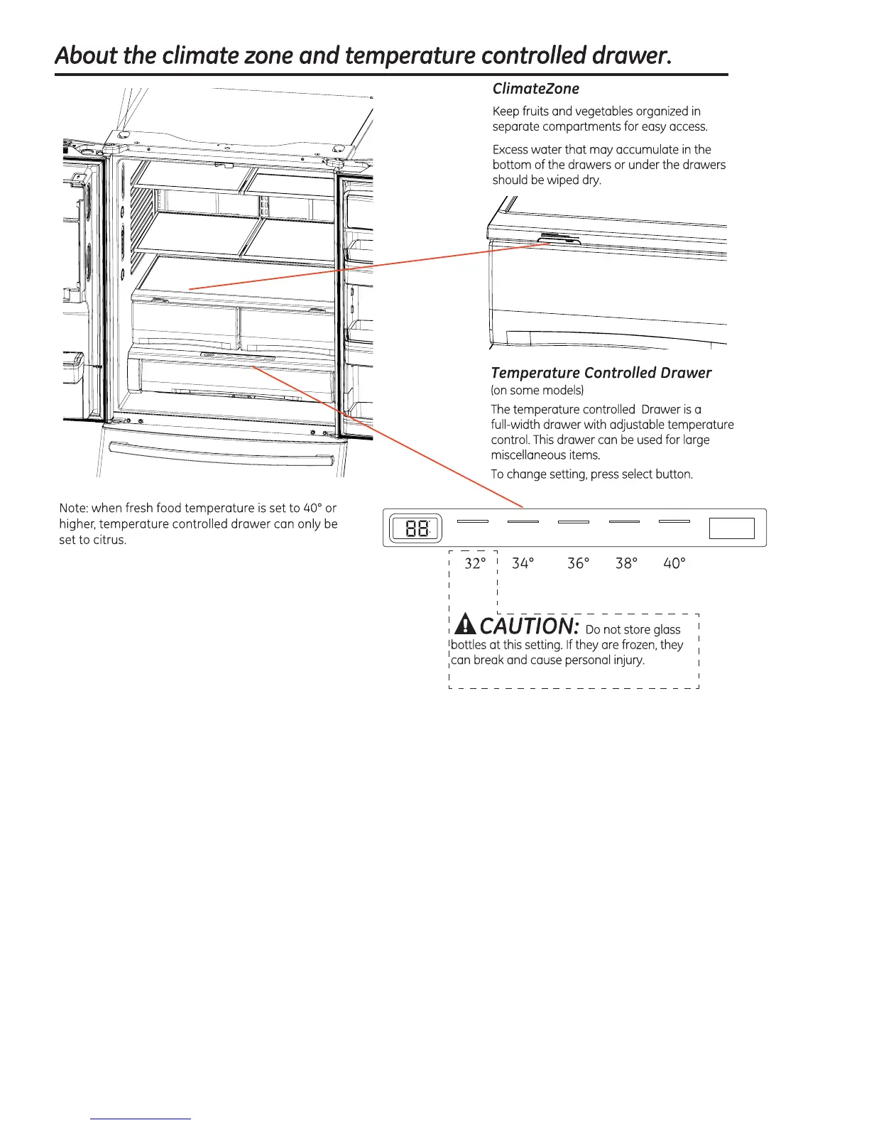 GE PFE27KS - Climate Zone and Temperature Drawer; ClimateZone Feature; Temperature Controlled Drawer Operation