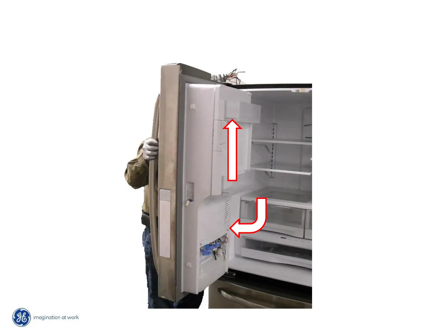 Open the door to a 90 degree angle from the case and lift to remove the door from the lower