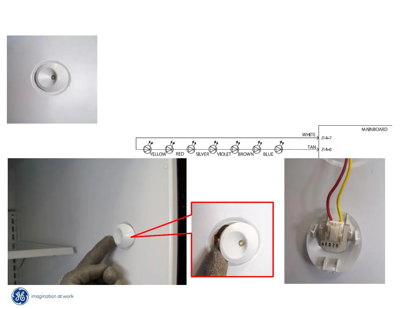 ¾ To remove the LED, pry up at the rear and slide to rear to release the tab.