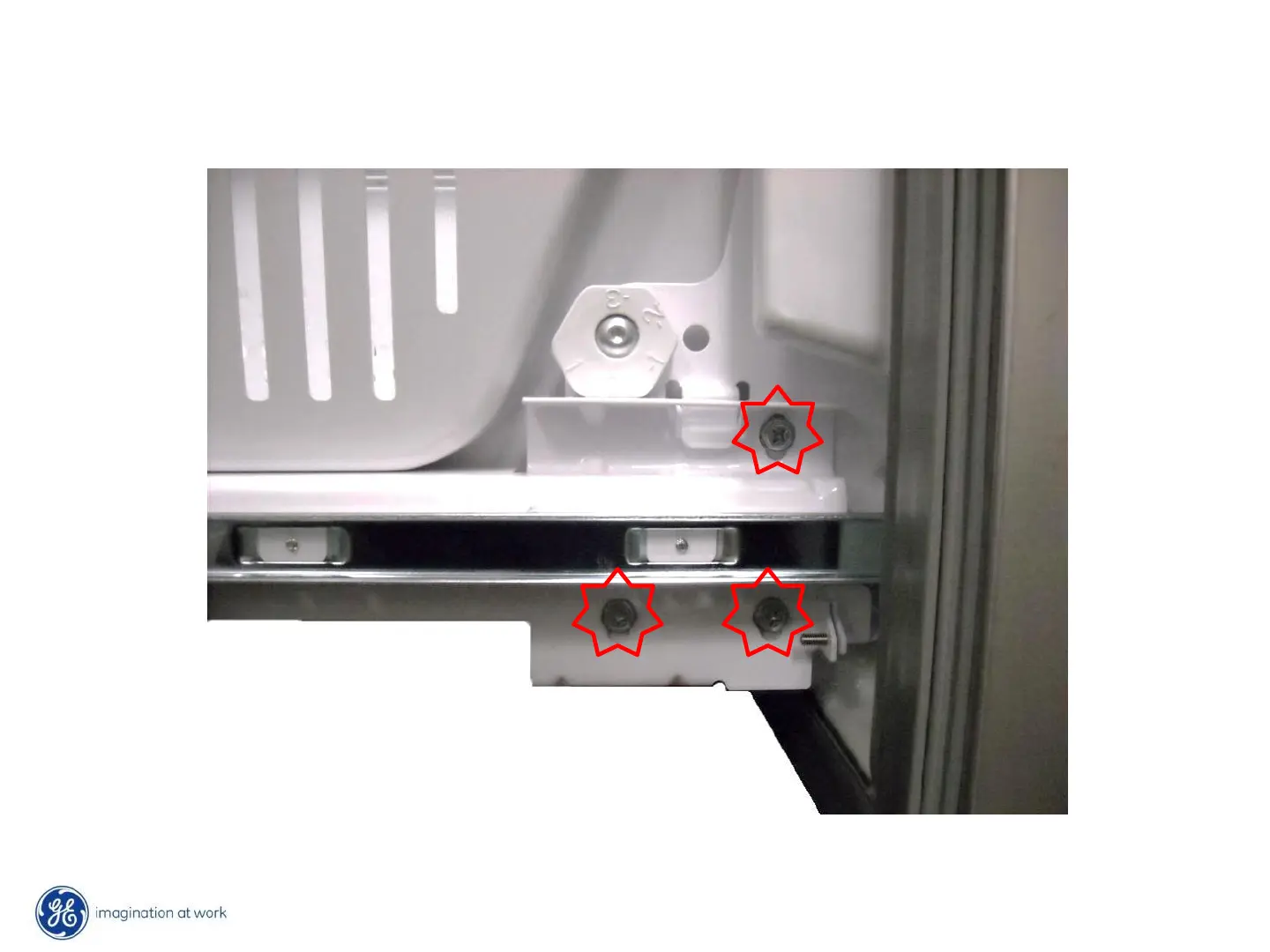 Open the drawer and remove three 3/8” screws from the left and right hand slides.