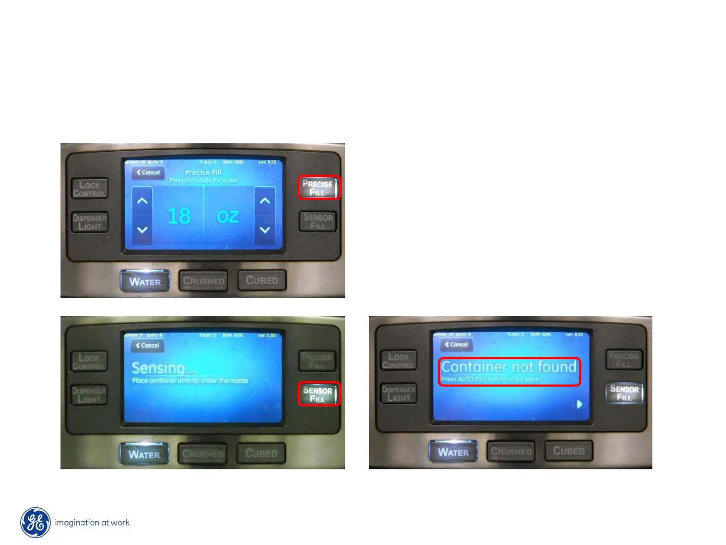 the customer selects the amount of water and ‘Sensor Fill’ where the dispenser uses
