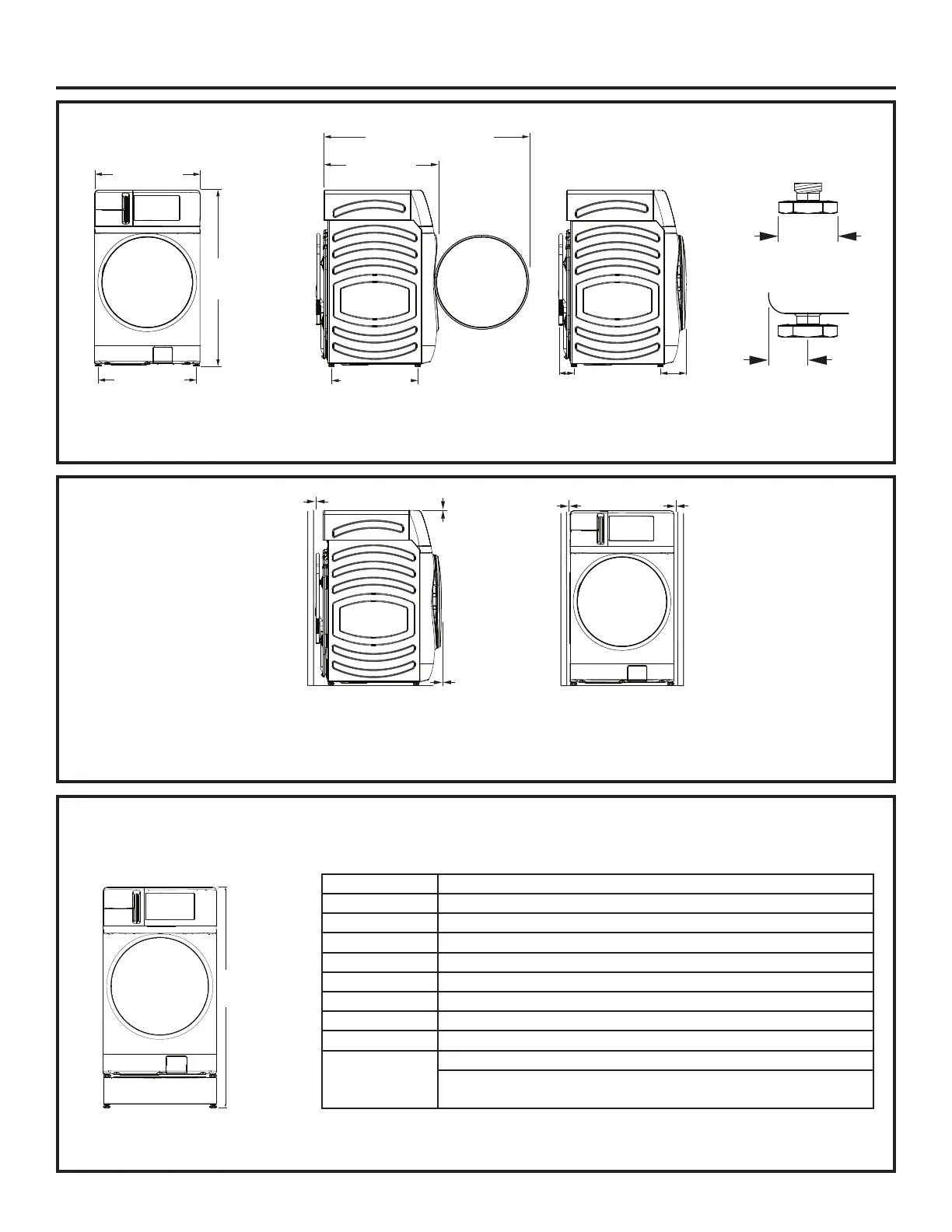 *With leveling legs retracted. See the COMBO DIMENSIONS section above for legs extension dimensions.