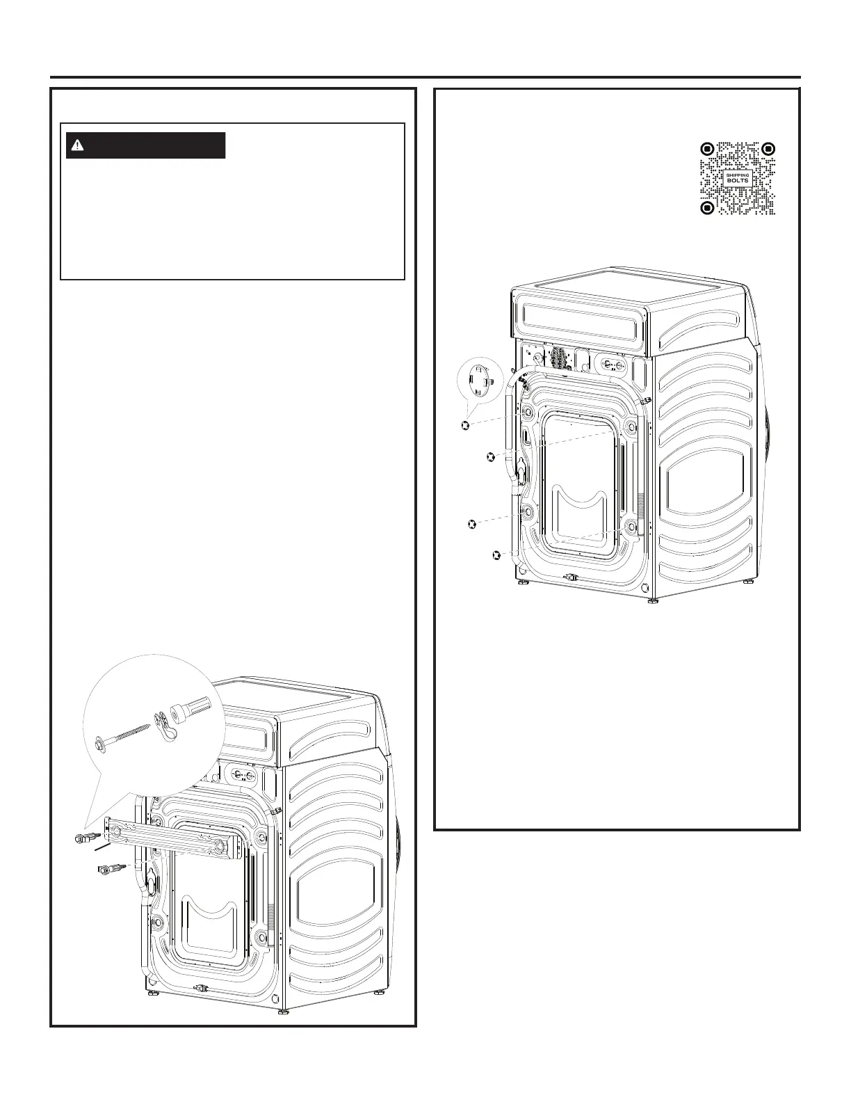 boulons d’expéditions et les entretoises pour éviter