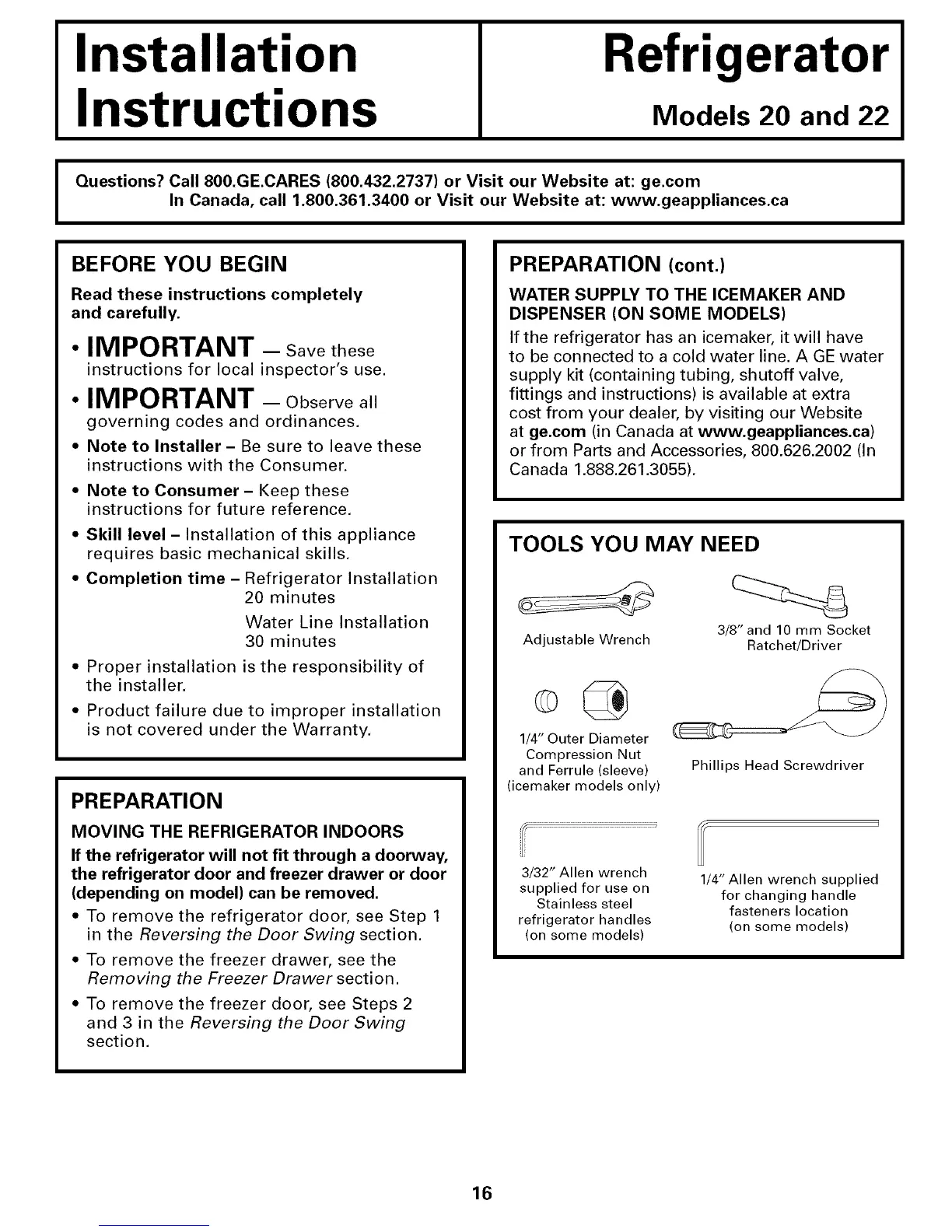 I Questions? Call 800.GE.CARES (800.432.2737) or Visit our Website at: ge.com