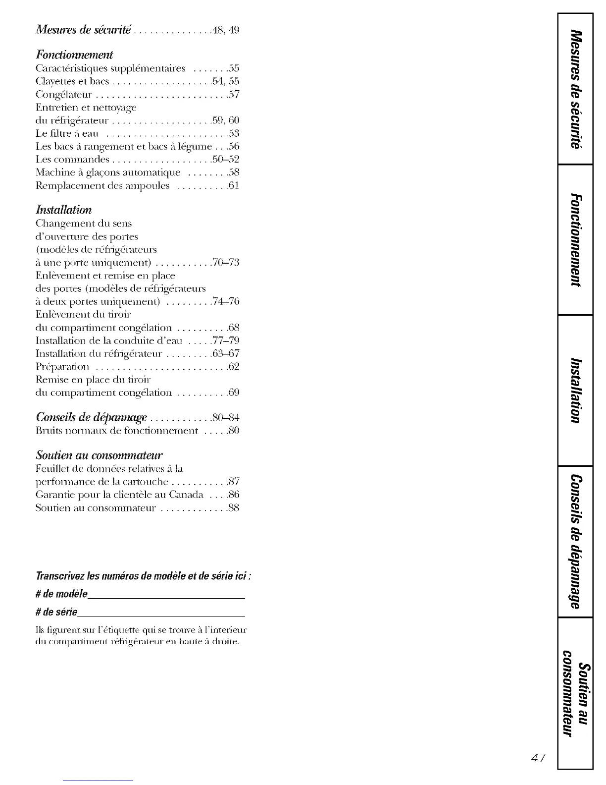 Transcrivez les numerosde modele et de serie ici :
