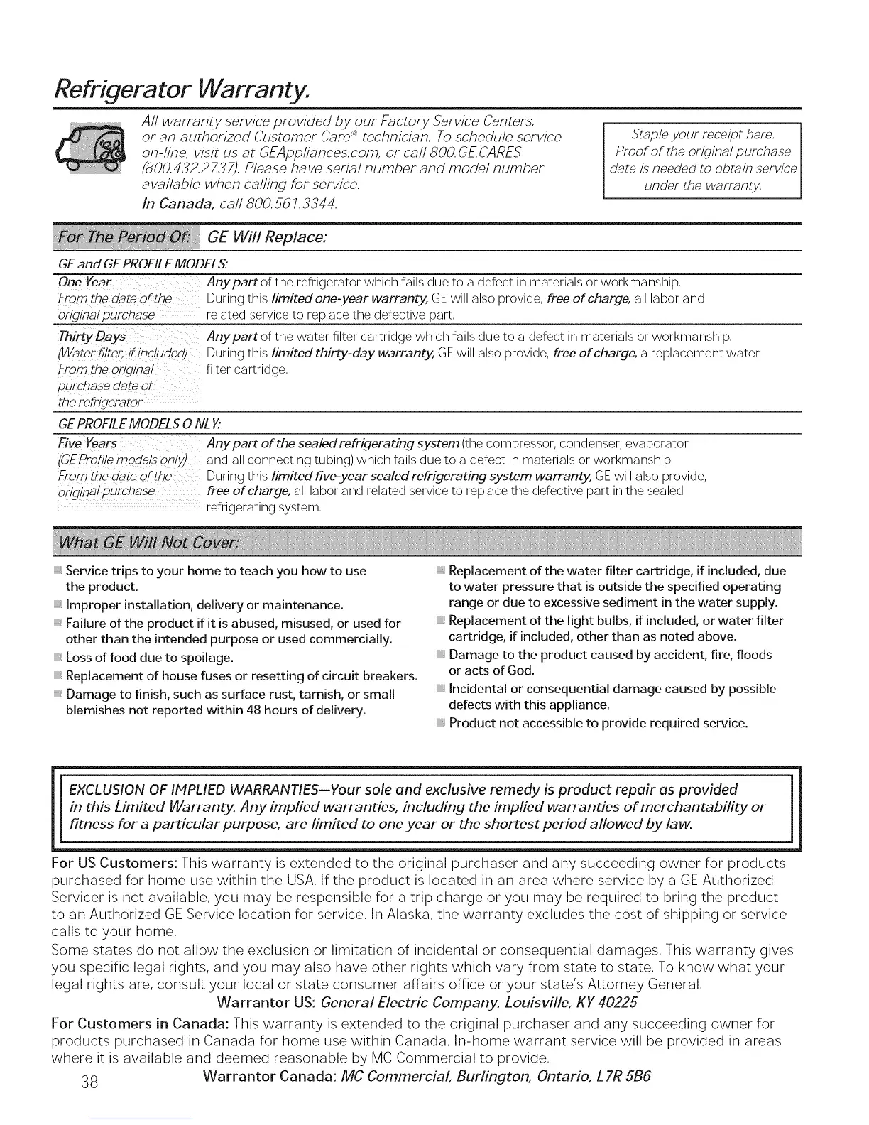Warrantor US: General Electric Company. Louisville, KY 40225
