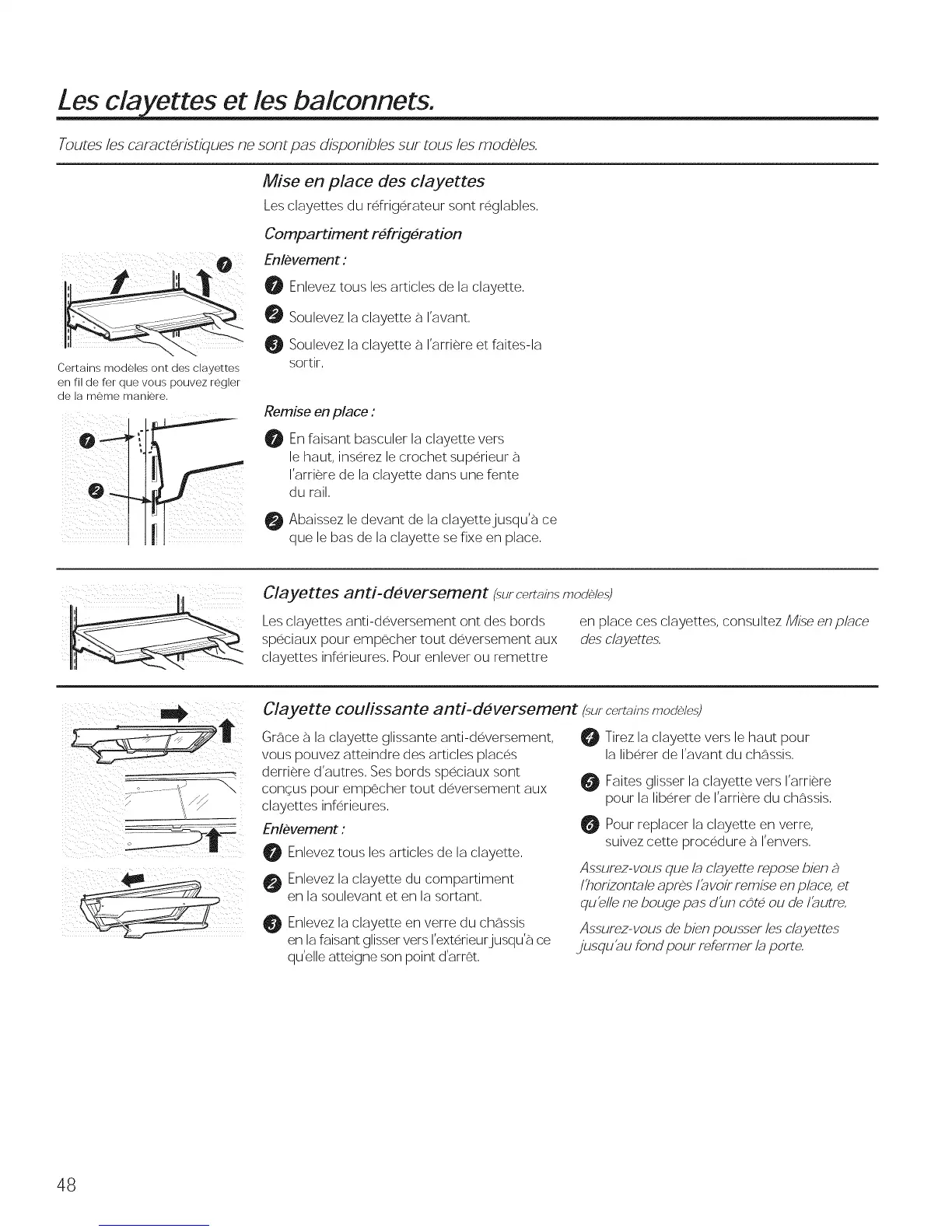 Les clayettes anti-deversement ont des bords en place ces clayettes, consultez Mise en piece