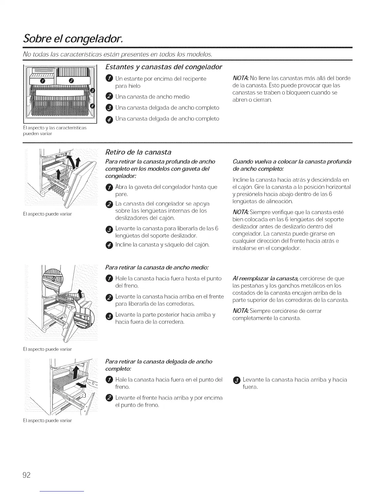 congelador. La canasta puede girarse en