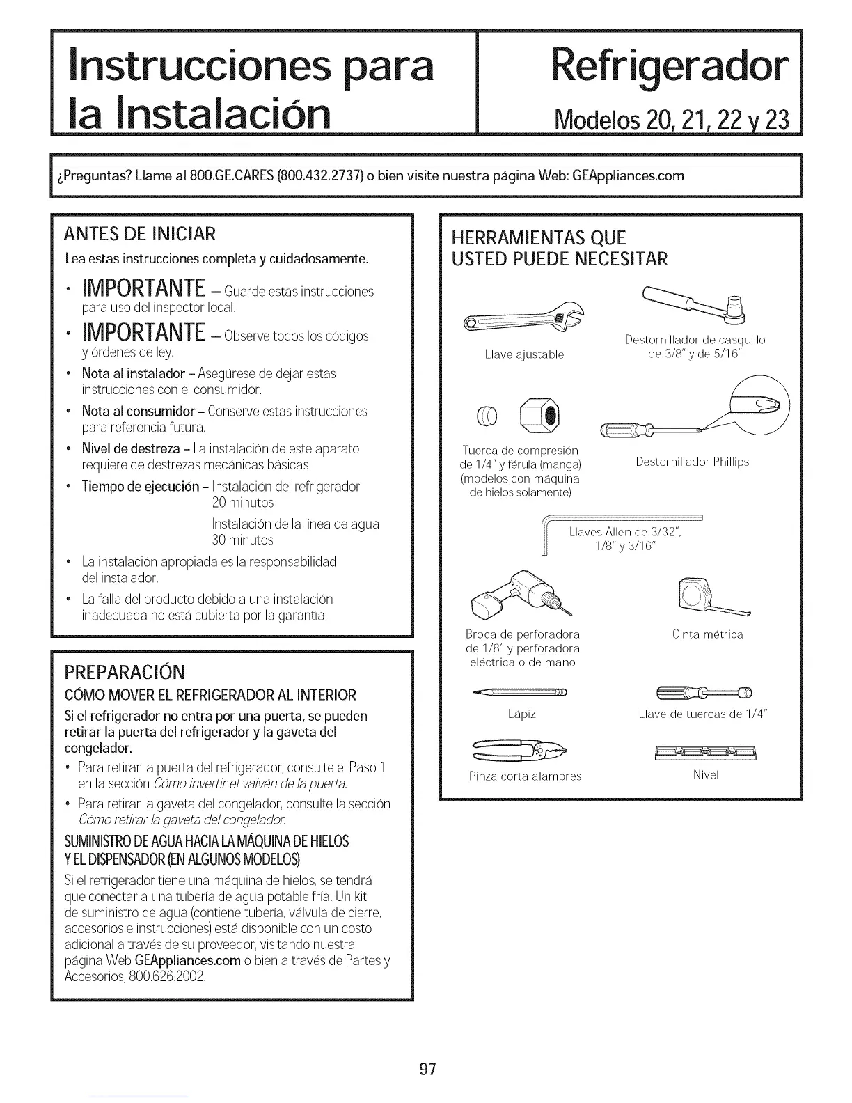 • Tiempo de ejecucion- Instalacion del refrigerador