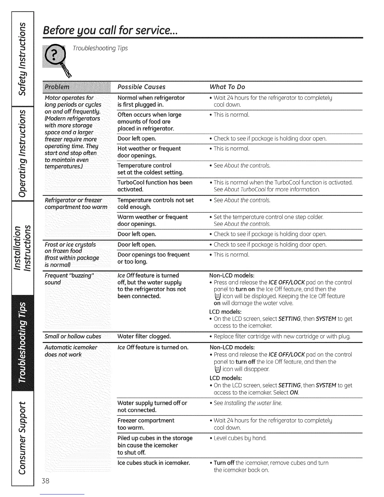 Motor operates for Normal when refrigerator • Wait 24 hoursfor the refrigerator to completelg