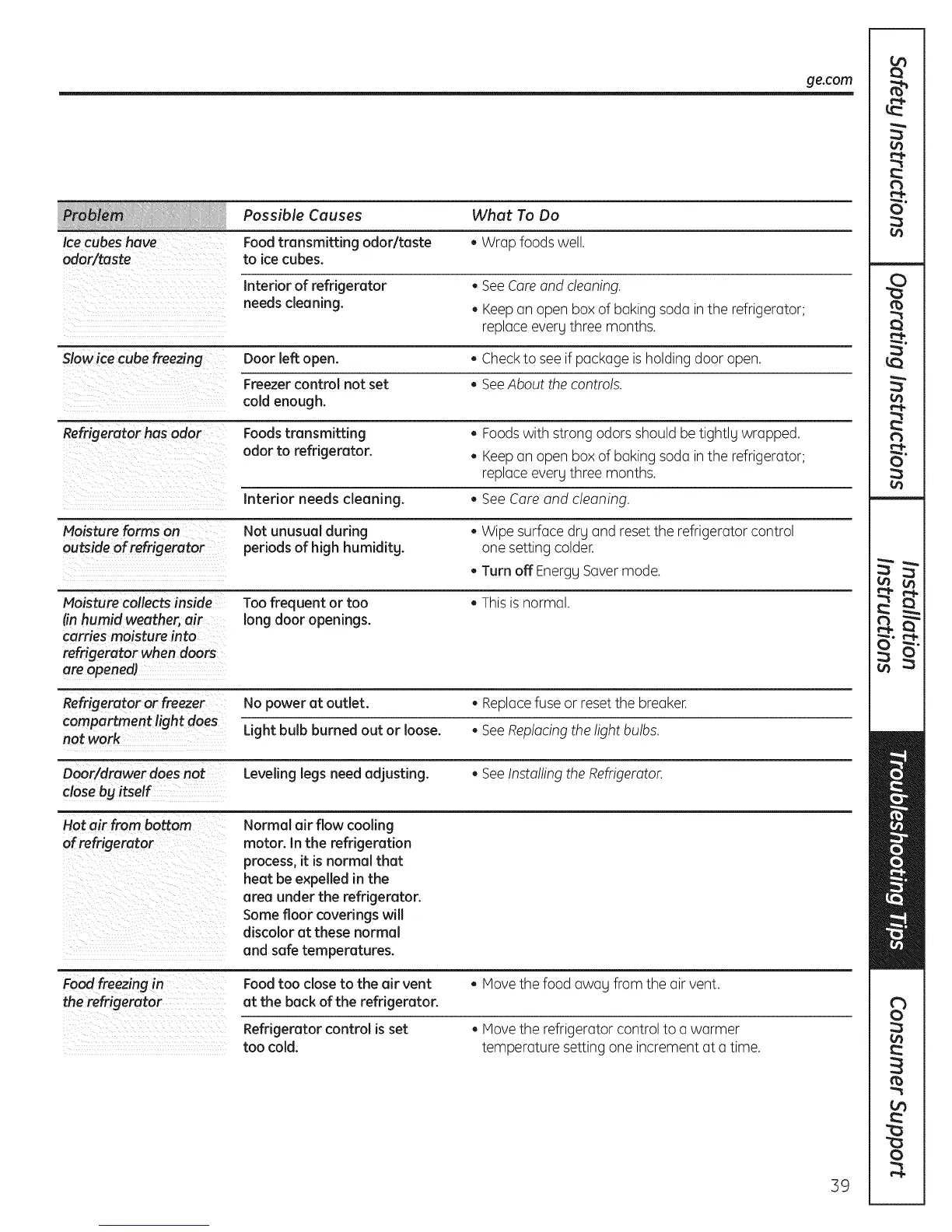 odor to refrigerator. • Keepan open box of baking soda in the refrigerator;